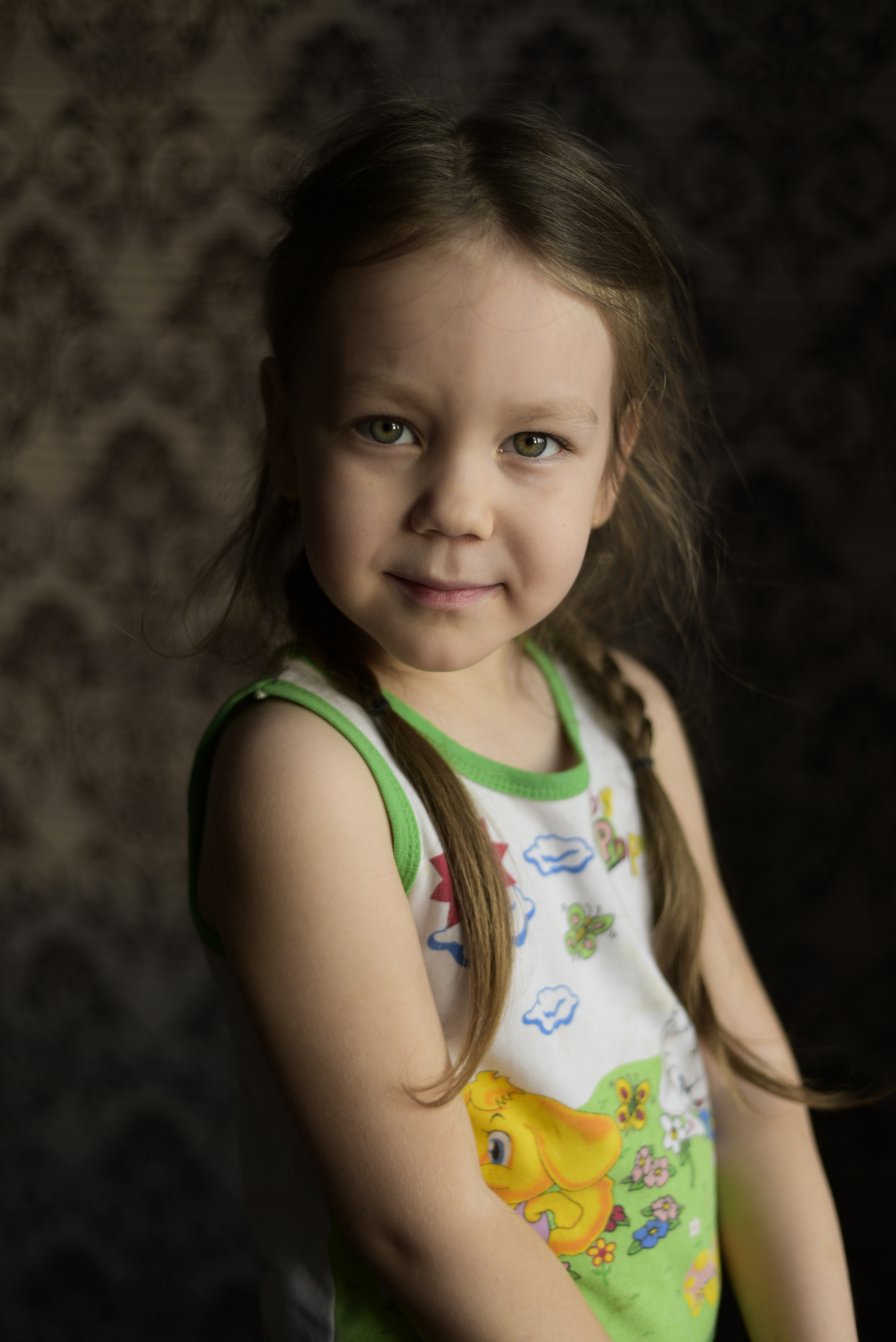 Хороший детский портрет получился! Удачно выбрали место для съемки и расположили девочку на достаточно расстоянии от стены, чтобы получить размытый фон. Свет достаточно мягкий, создал приятный свето-теневой рисунок на лице и фигуре девочки. Глаза при этом получили небольшие блики, которые сделали взгляд более живым и выразительным.