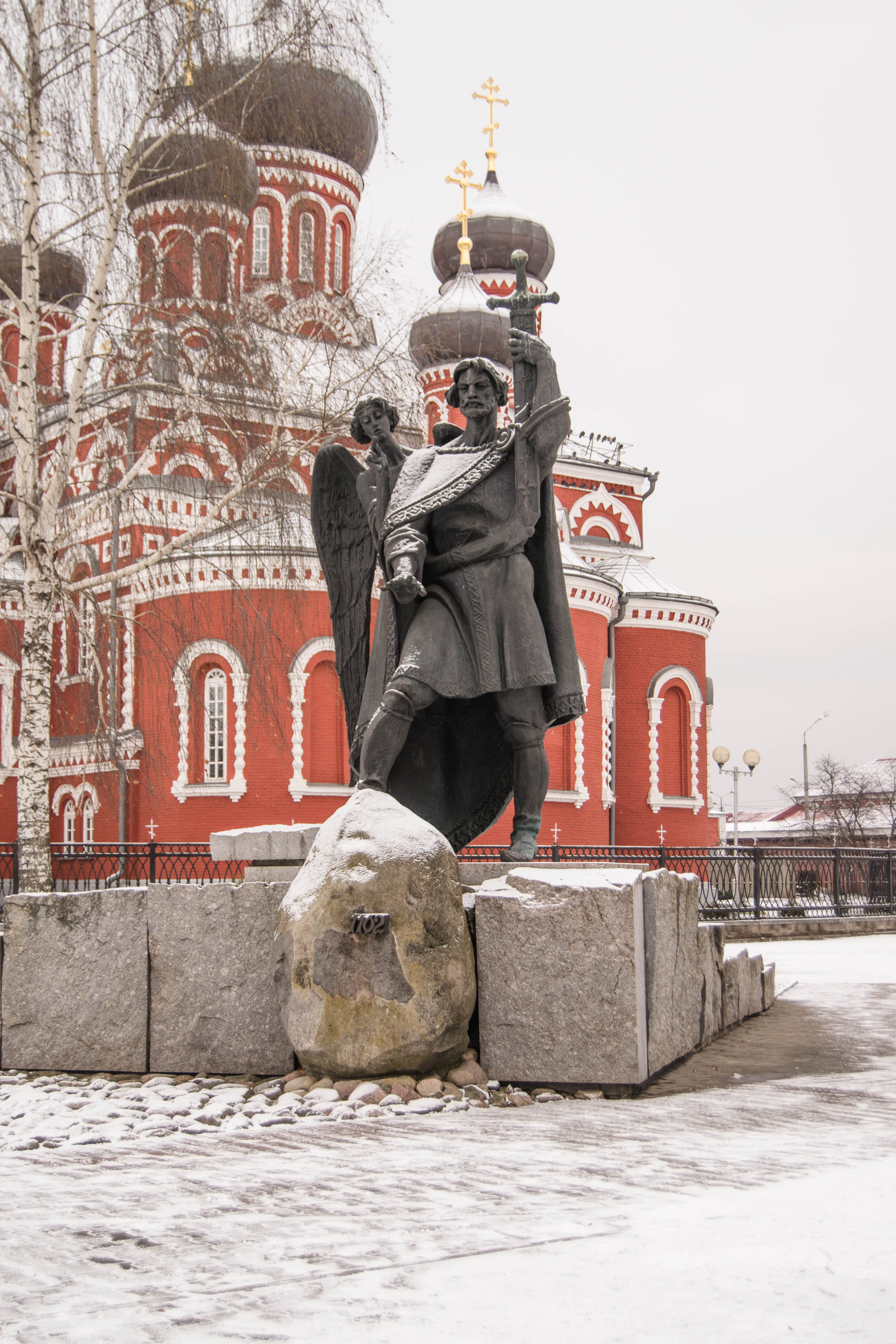 Благодаря цветовому акценту и центральной компоновке, памятник сразу же привлекает внимание зрителя. Вертикальная компоновка подчеркнула высоту памятника. Снимали в самом сложном режиме, в ручном, это похвально. Исо не завысили, шумов нет. Выдержка 1/160 вполне комфортна для съёмки с рук, смаза удалось избежать. Фон отделён благодаря съёмке на открытой диафрагме F4,5