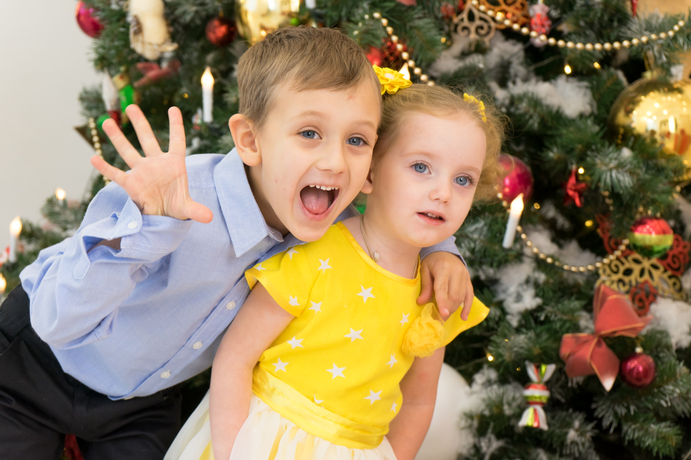 Дети как будто впрыгивают в кадр, оба наклонены. Девочка не смотрит в объектив. Линии сечения в идеале соблюсти для обоих людей, но хотя бы для одного было бы достаточно. ИСО в студии или светлых помещениях выставляйте на 100-200, а выдержку на 1/125