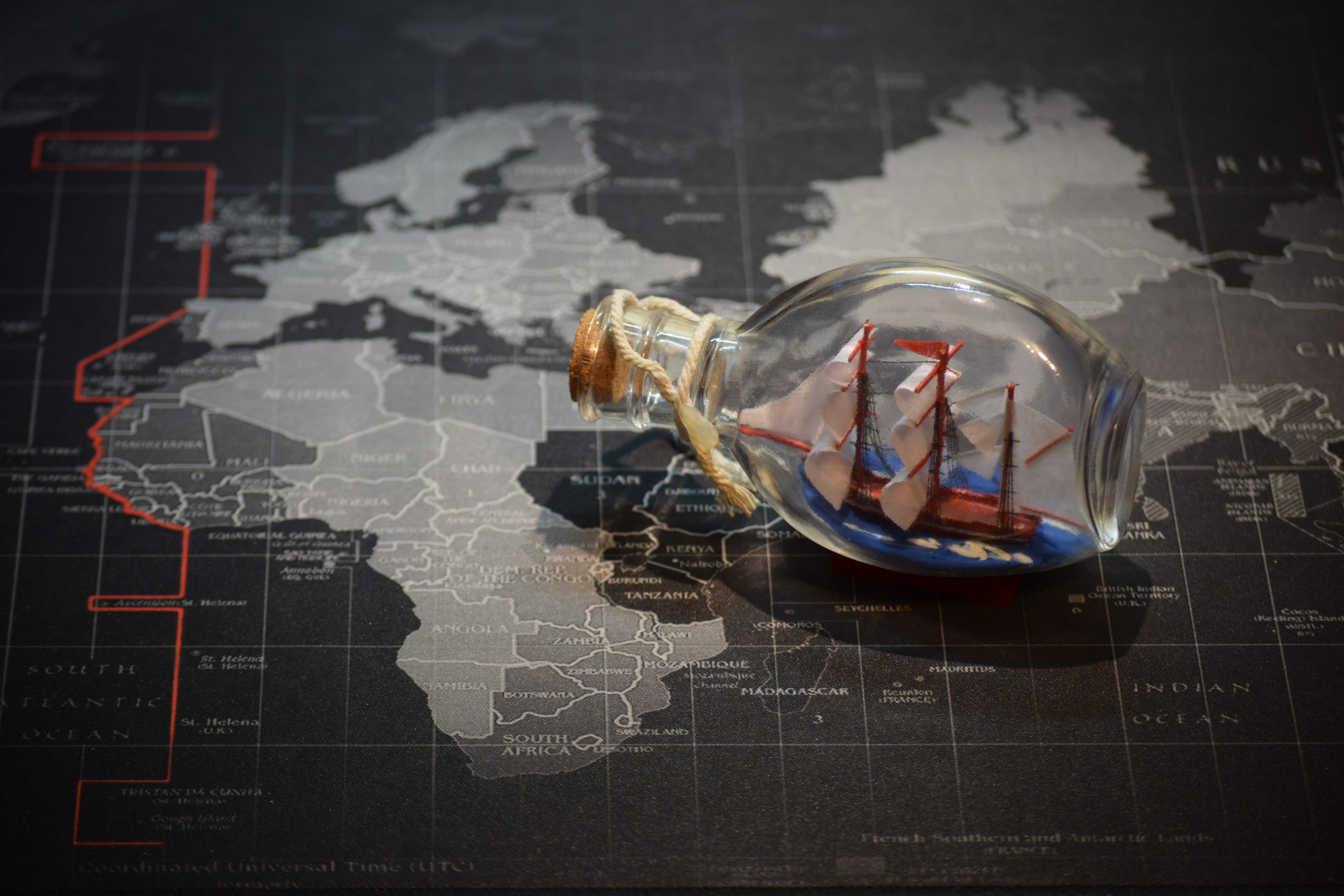 Бутылку можно чуть чуть опустить ниже, чтобы она оказалась в диагонали кадра. Сейчас она приближена к середине кадра, нижняя часть карты выглядит пустовато.
