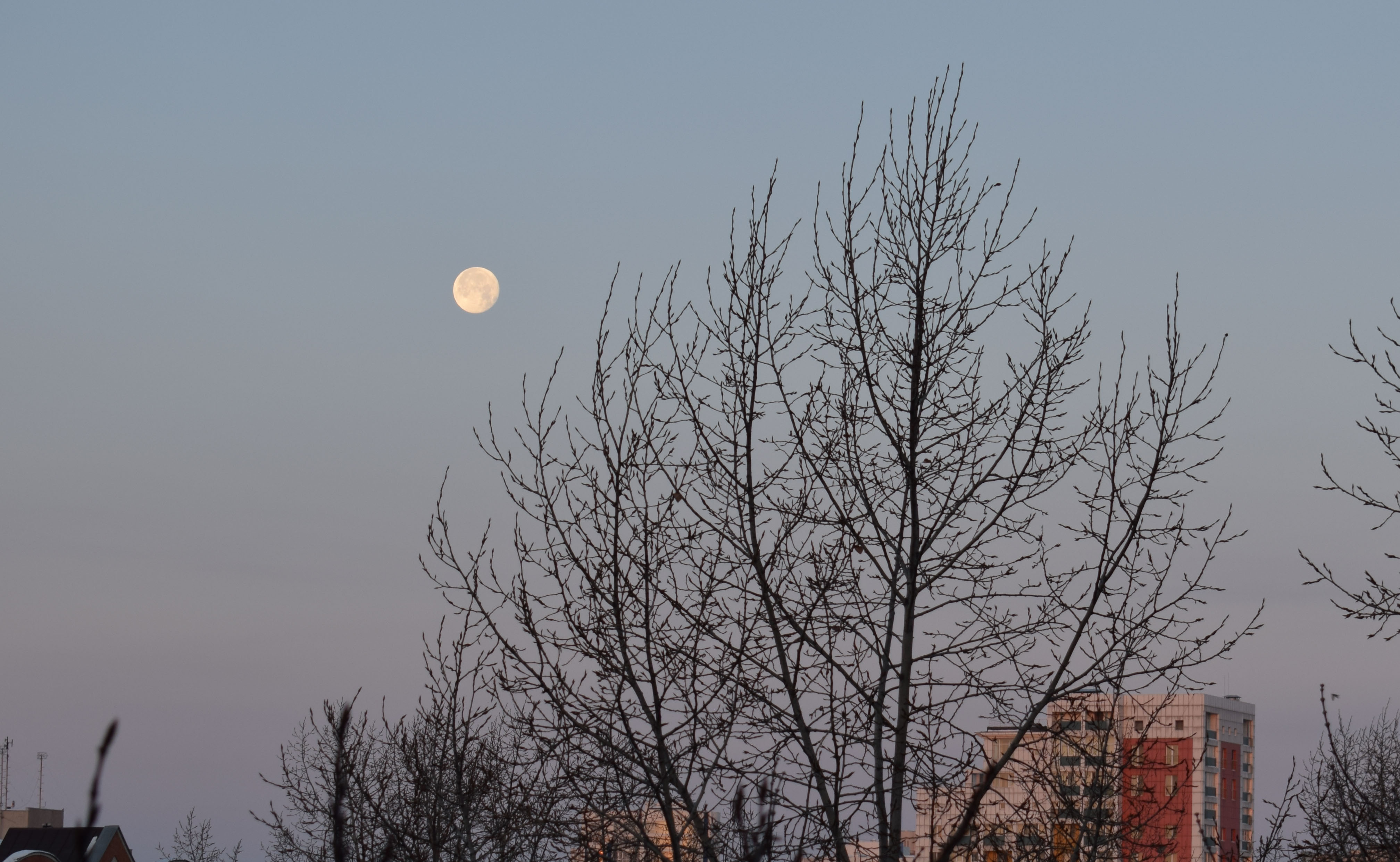 Доброго дня! Всё утро пробовала снимать Луну. Режим М не покорился мне, фотографии получались темными, только в режиме А удалось сделать этот кадр. Объектив китовский, пришлось сделать кадрирование.