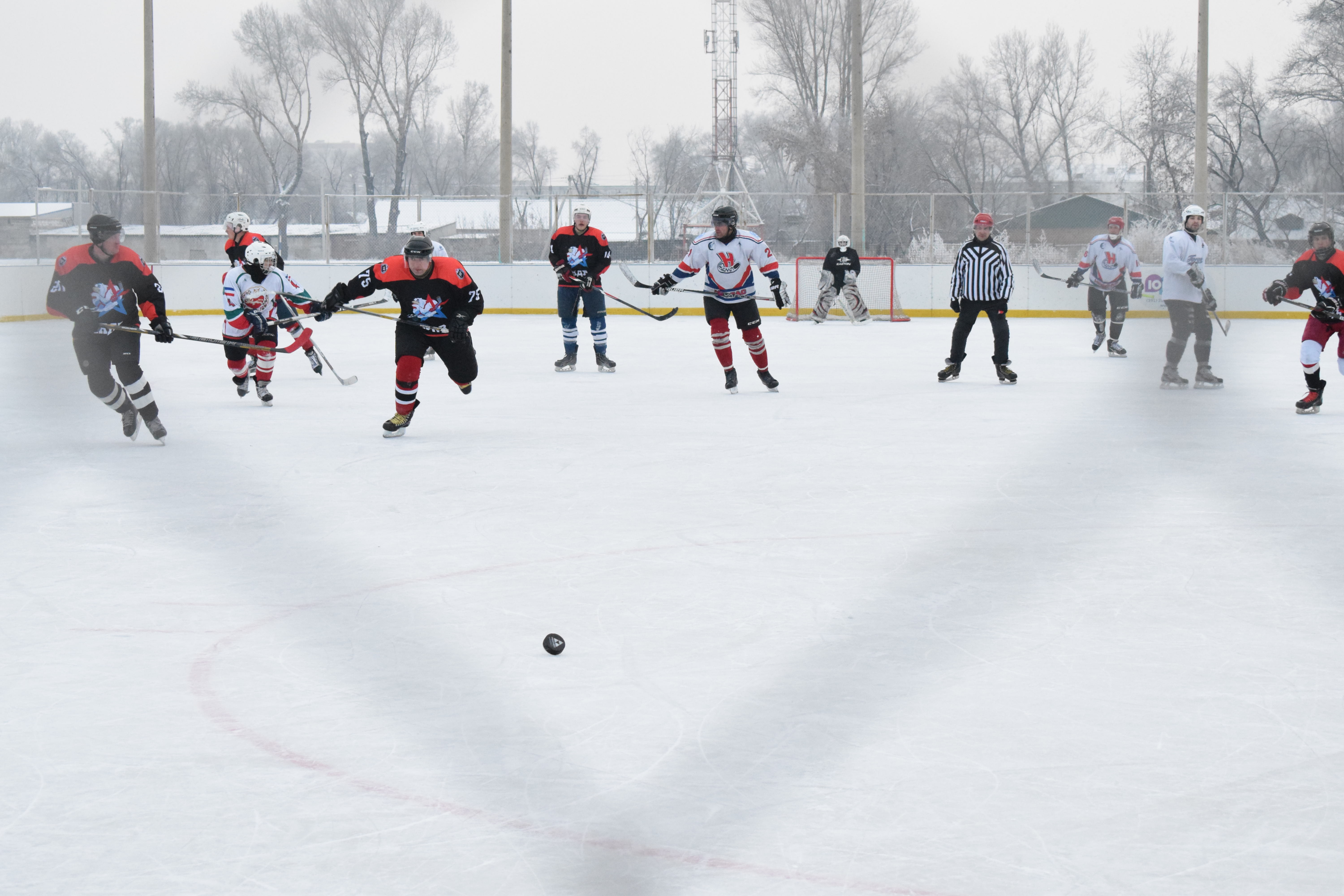 Сюжет динамичный , хоккеисты устремляются в сторону камеры за шайбой.
