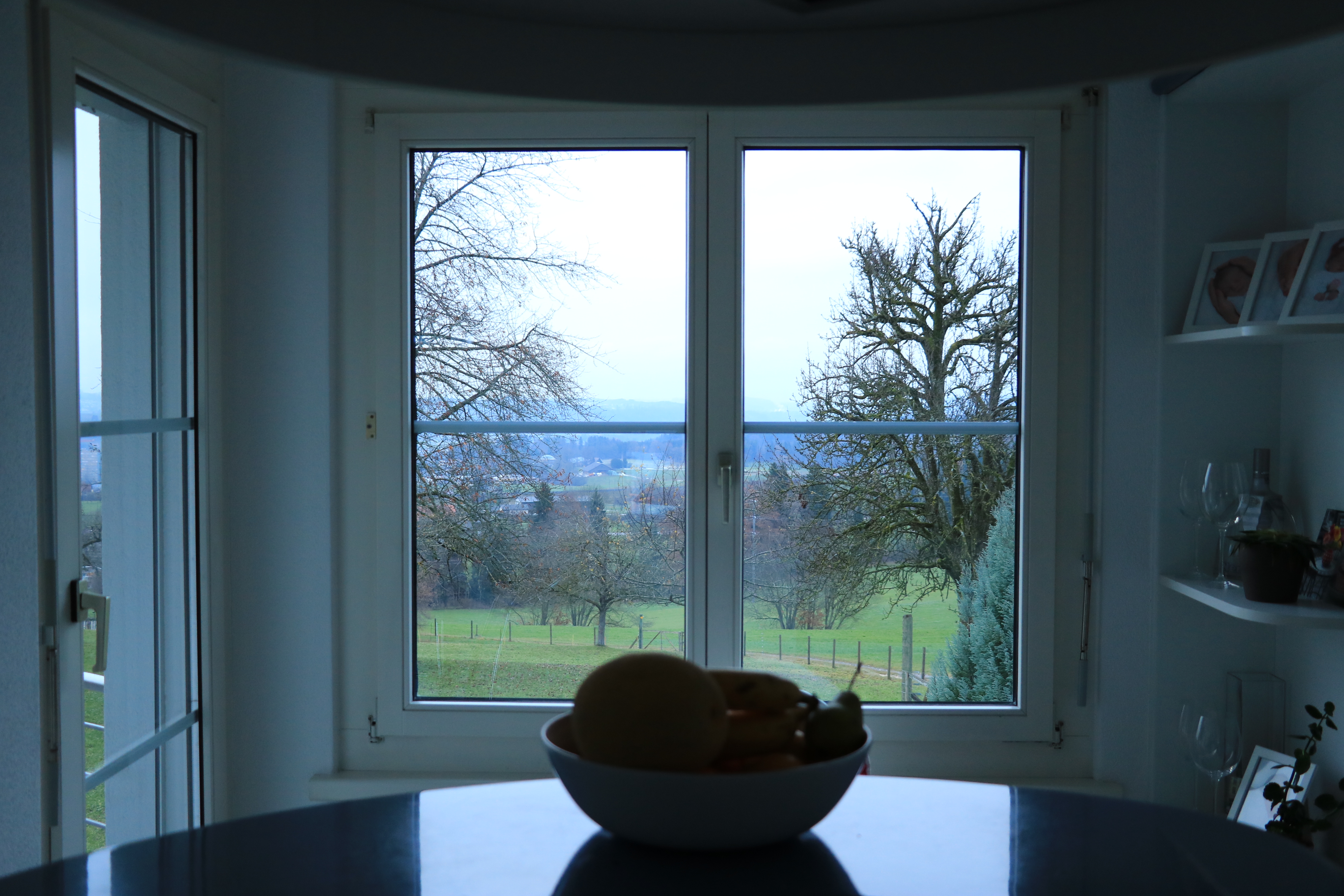 Хороший снимок! Показали красивый вид за окном и часть интерьера. Достаточно хорошо проработан пейзаж за окном. Неплохая резкость и детализация. Пасмурная погода обеспечила рассеянный и мягкий свет.