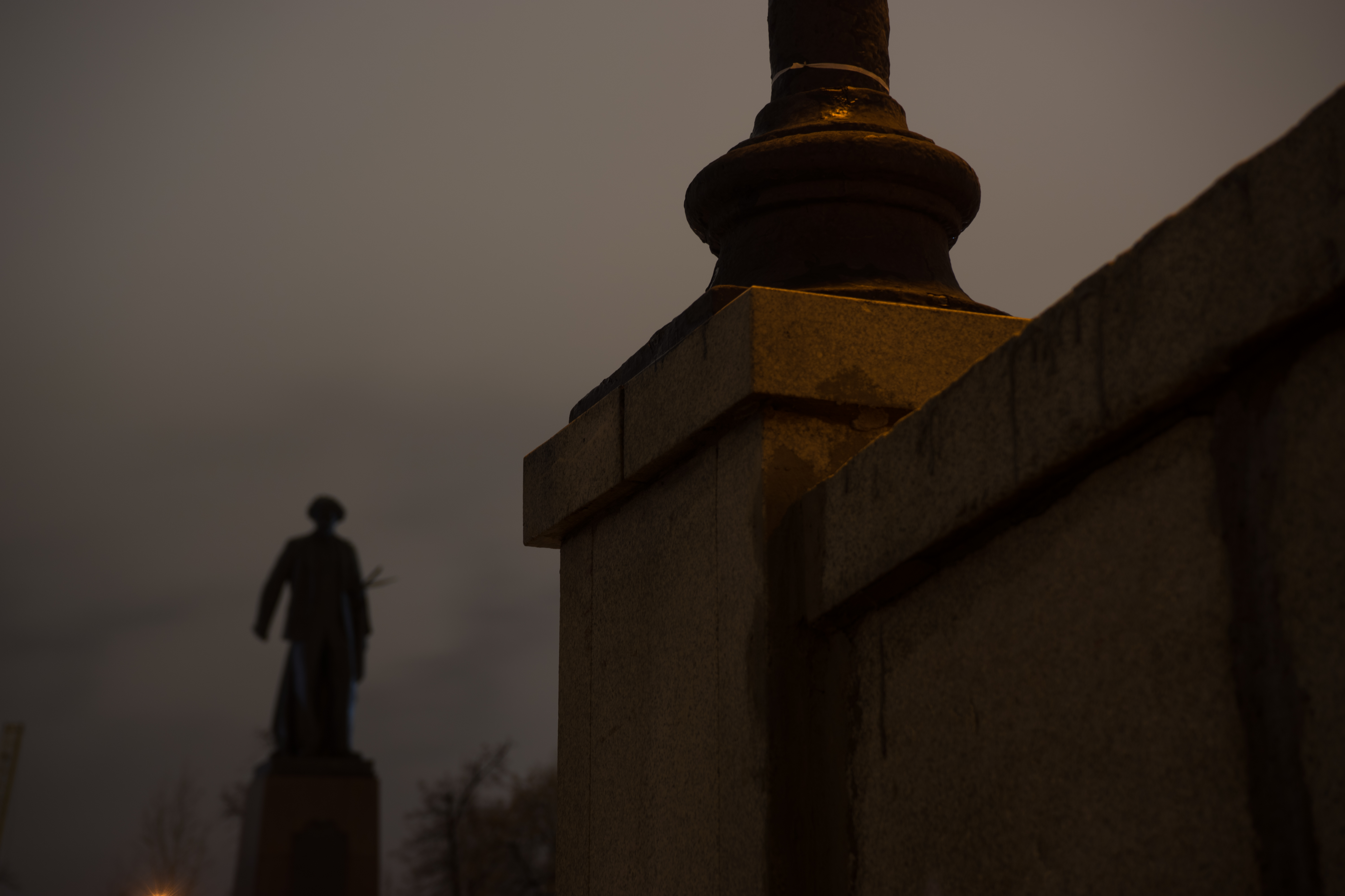 Силуэт статуи не совсем удачно смотрится при данном размытии, следовало на задний план поместить какой-нибудь городской пейзаж чье размытие не будет вообще играть роли