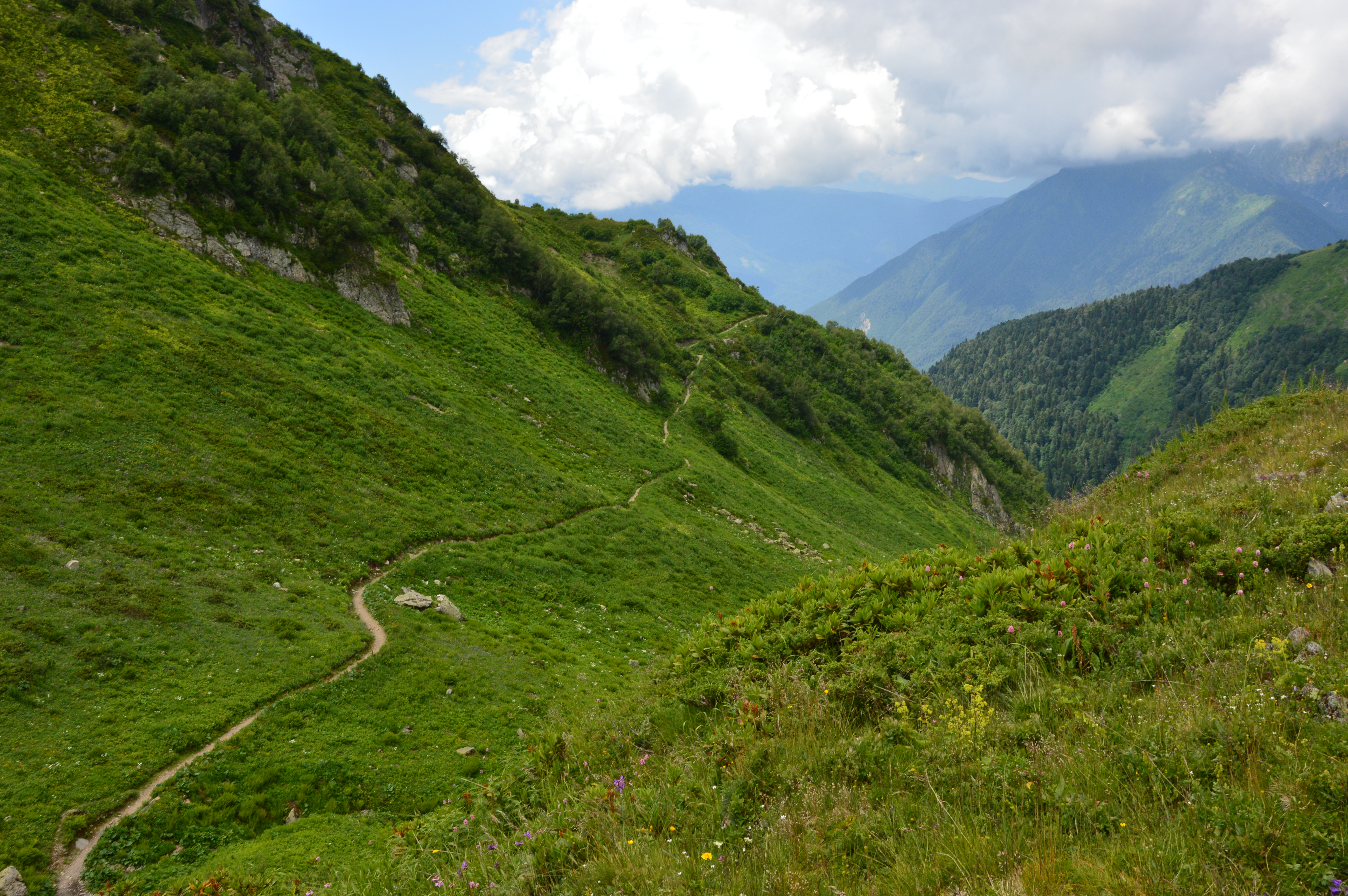 Здравствуйте. На этом фото основной восходящей диагональю является горная тропа. Она сопровождает взгляд снизу кадра в верх, тем самым получается такая своеобразная тропинка к облакам. Так же из-за особенностей горного рельефа на фото можно найти еще несколько менеевыраженных диагоналей