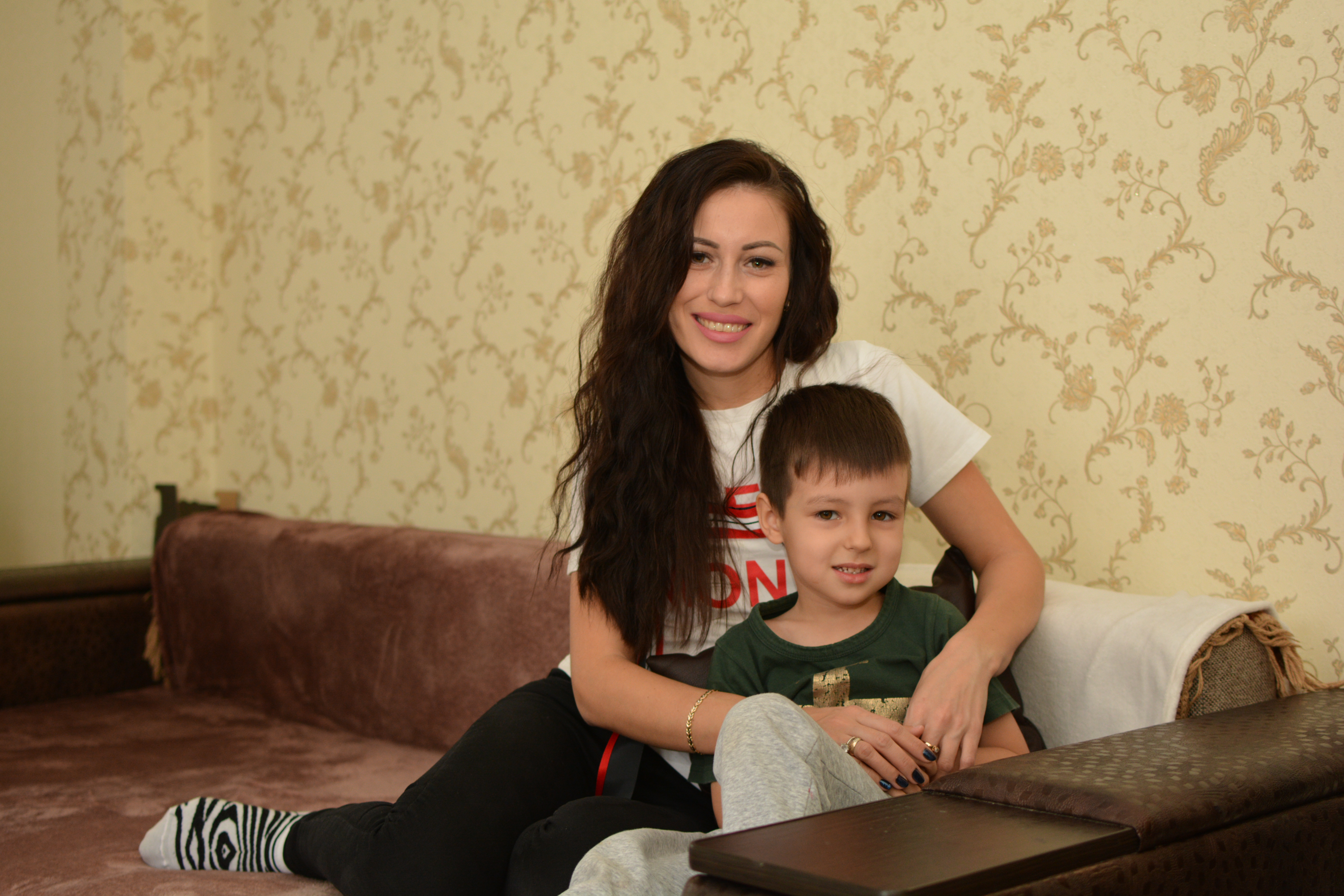Никон D7100 35mm приоритет А 1/60,ISO 500, F2.5,WB вспышка,вспышка в потолок.В левом глазу мамы нет блика,видимо прикрыли волосы.