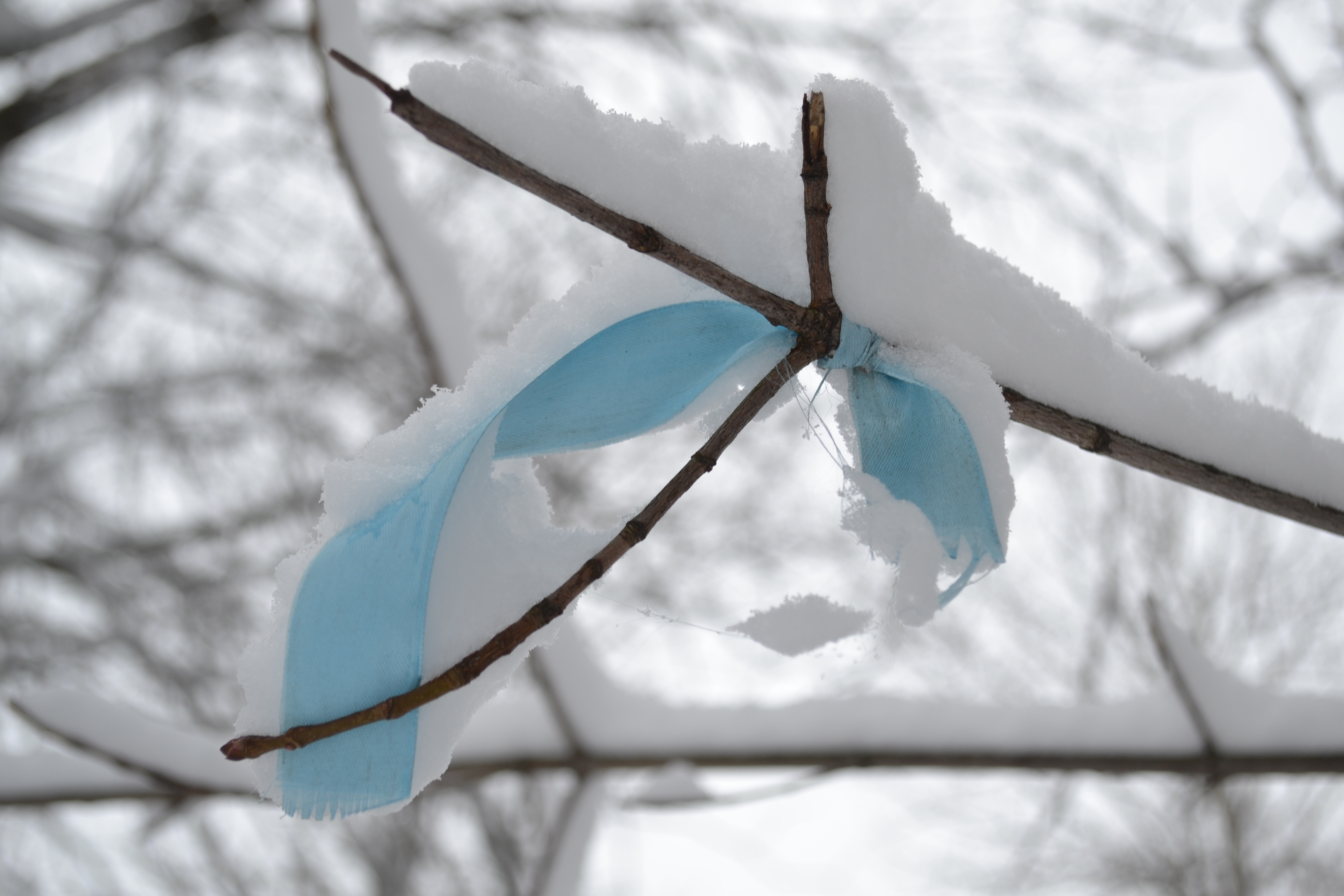 Неплохой кадр! Заметили интересный сюжет для снимка. Яркая голубая ленточка отлично выделяется на практически монохромном фоне и за счет этого сразу акцентирует на себе внимание. Задний план неплохо размыт, не отвлекает от ленты. Неплохая резкость у снимка.
