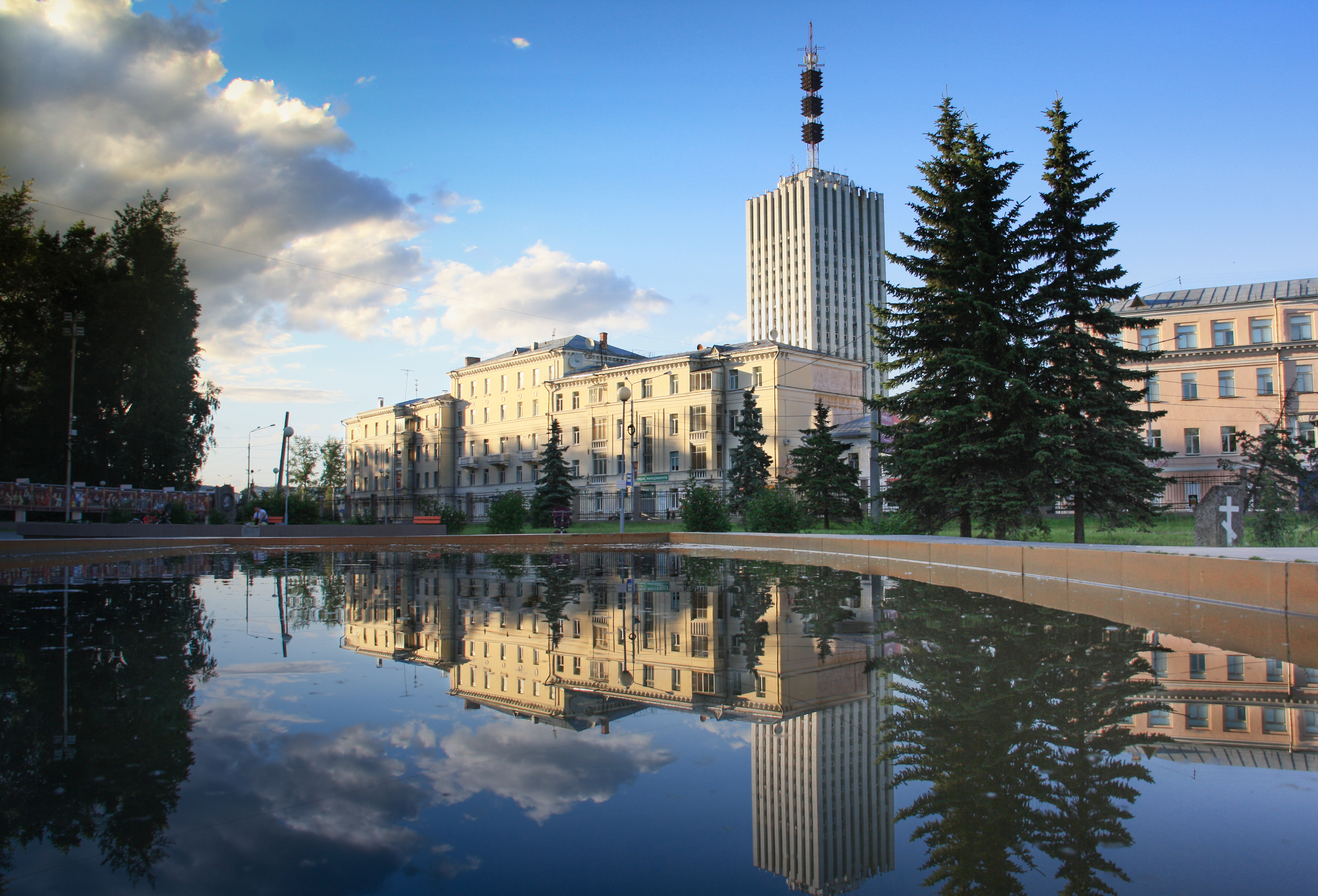 Добрый день! Для работы над этим заданием выбран городской пейзаж на закатном солнце. Деревья на втором плане оказались сильно затенены, почти силуэтны, что с одной стороны подчеркивает яркость отражения, но с другой ведет к потере деталей в тенях. Предложенными в уроке способами применения градиентных фильтров с разными параметрами слегка затенено небо и осветлен передний и средний план. Здания на втором плане прикрыты маской с целью скрыть возникший из-за фильтра пересвет
