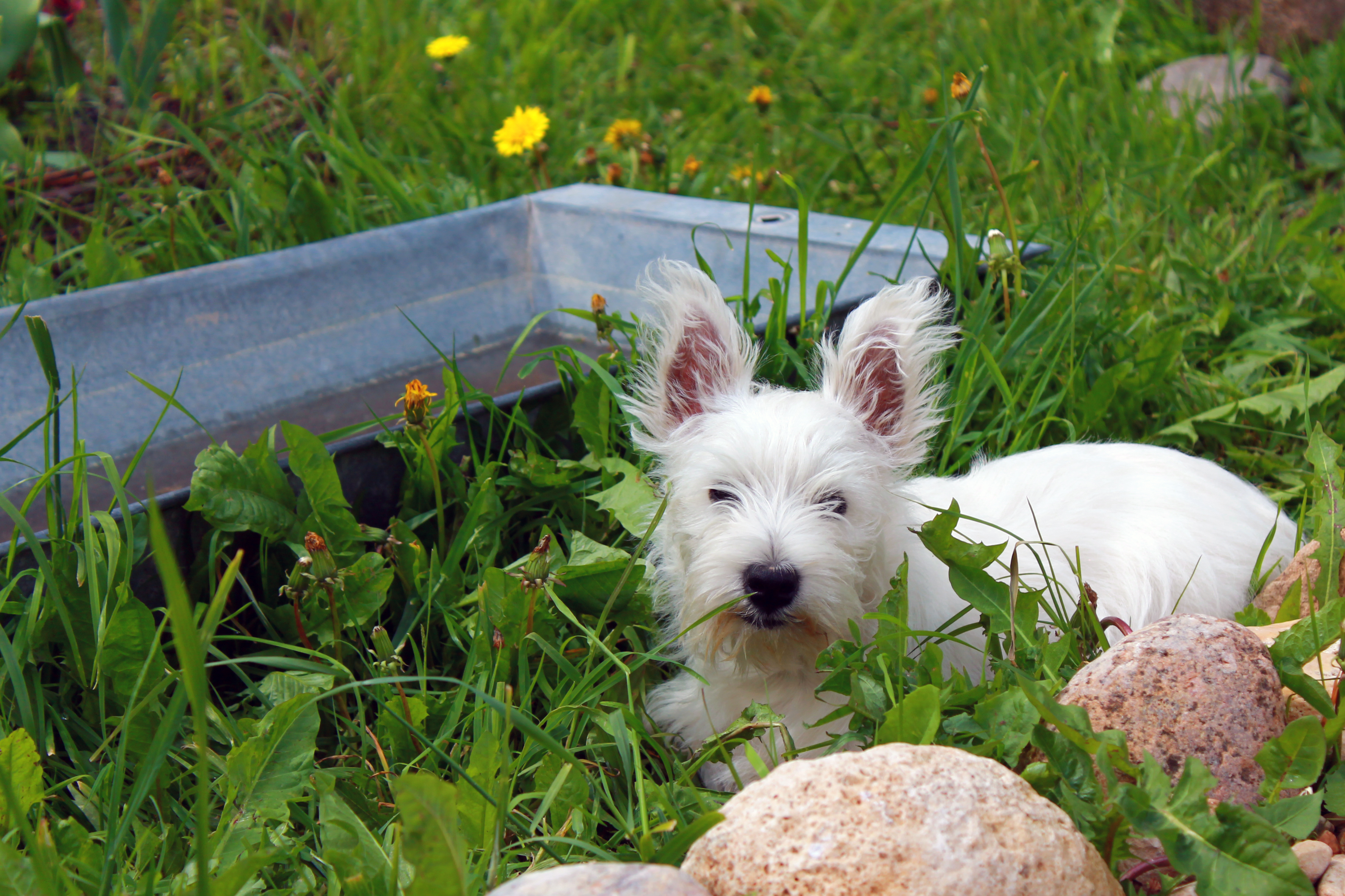 Деталь в фоне делит снимок на части и немного отвлекает от собачки внимание. Камни в переднем плане немного утяжеляют портрет.