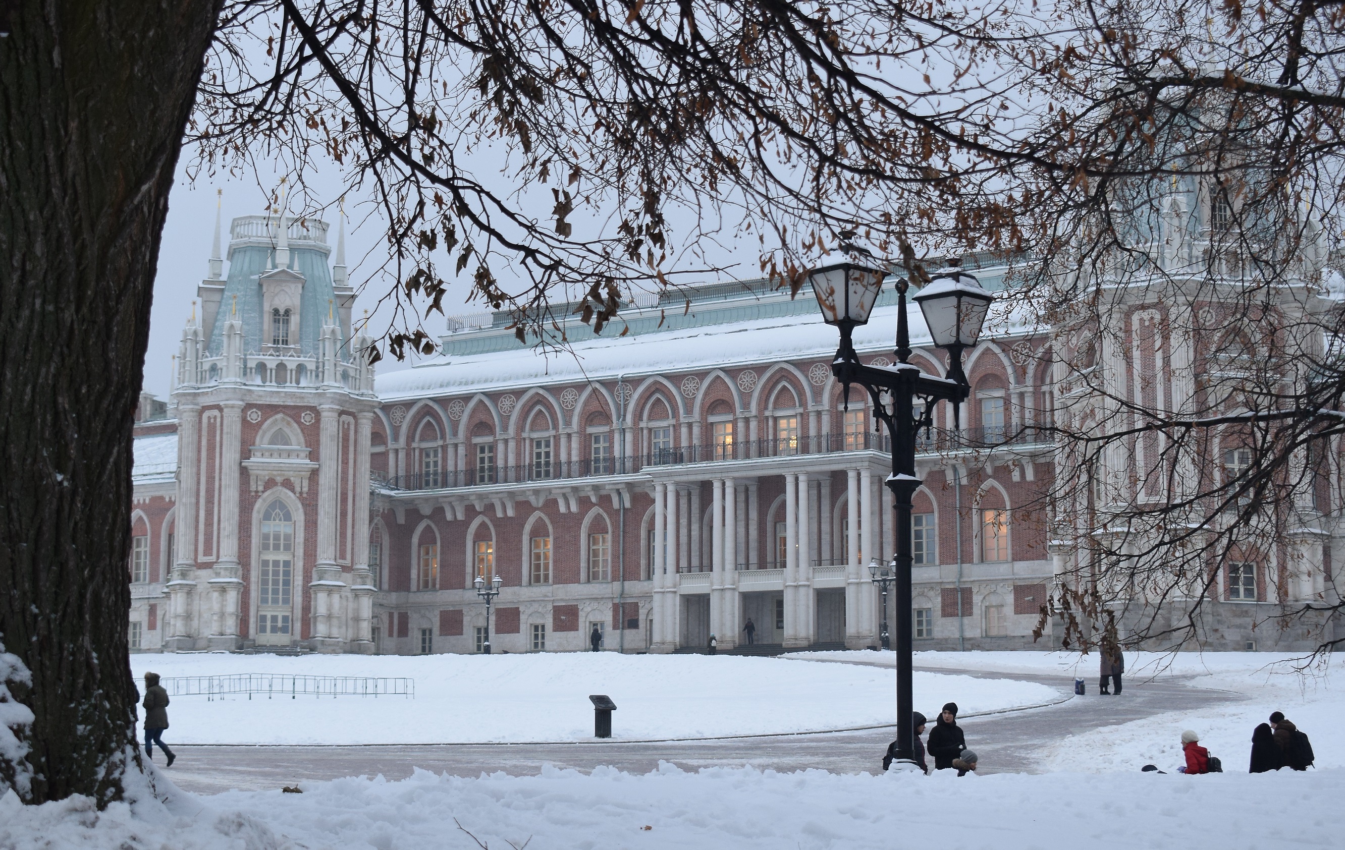 Этот зимний пасмурный день как нельзя лучше подошел для съемки немного пастельного изображения пейзажа в Царицыно с Большим дворцом. Хотелось показать его легким, воздушным при всех его размерах. Режим Р, баланс белого "облачно".