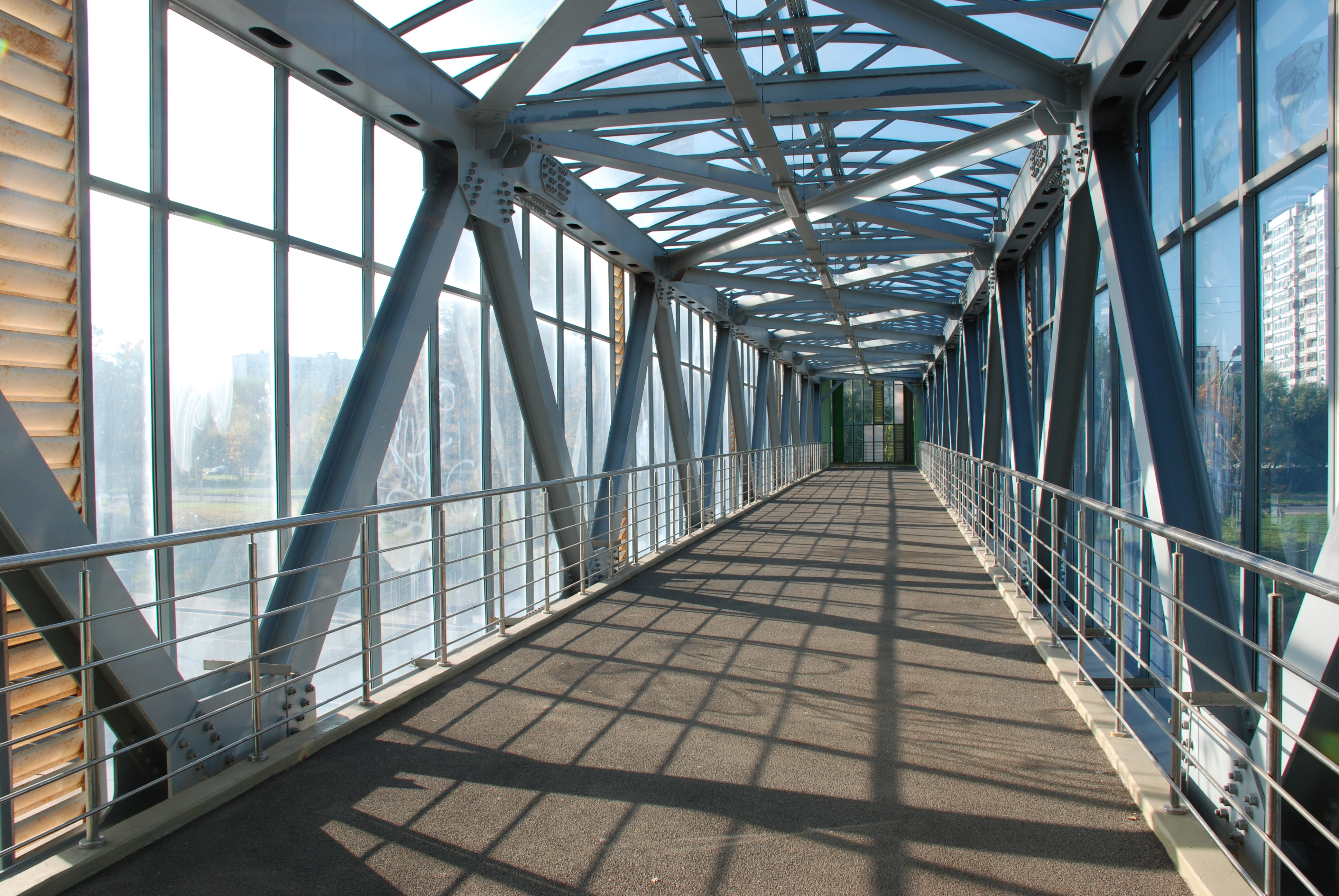 Пешеходный мост над Профсоюзной улицей. Дело н в объективе, а в выборе объекта фокусировки в камере. Я пробовал различные и не смог выбрать универсального. Необходимо производить настройку в зависимости от объекта и случаются ошибки.