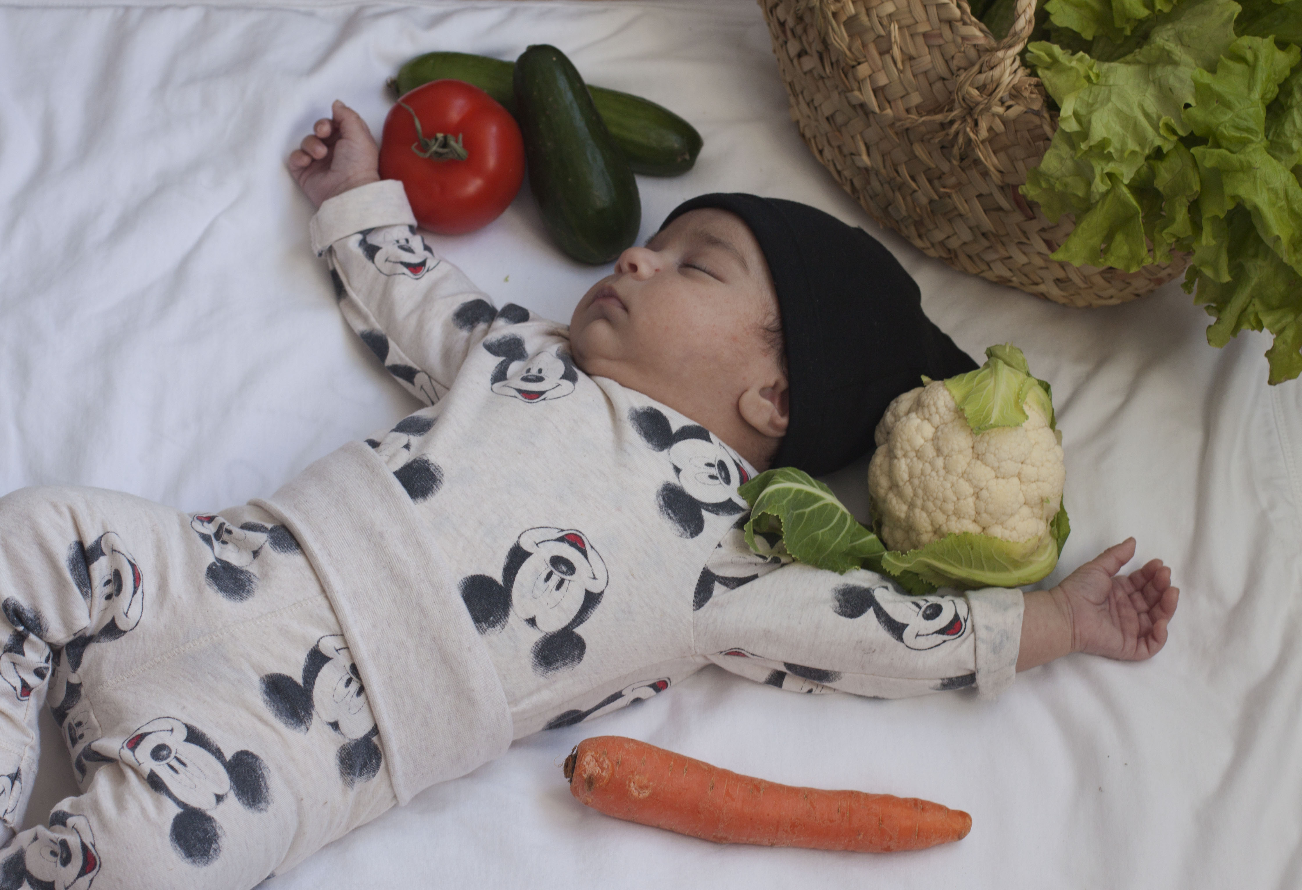 Интересный сюжет, словно малышка объелась овощей и уснула)