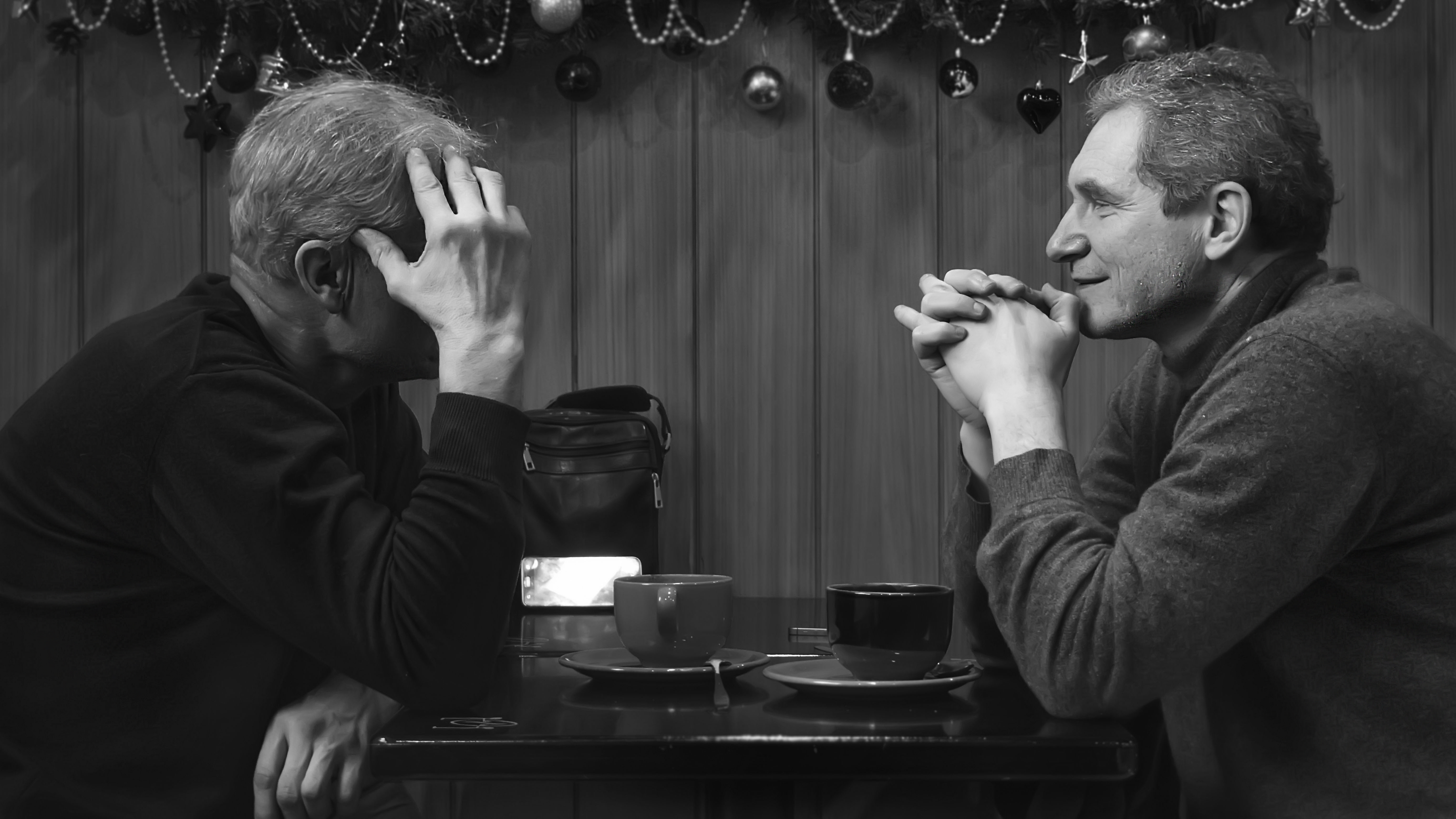 Неплохой кадр! Показали беседу двух мужчин. Отсутствие цвета позволило убрать яркие цвета из снимка и сконцентрировать внимание зрителя на сюжете в кадре, заставляя рассматривать детали, которых в кадр достаточно много. У снимка неплохой контраст.