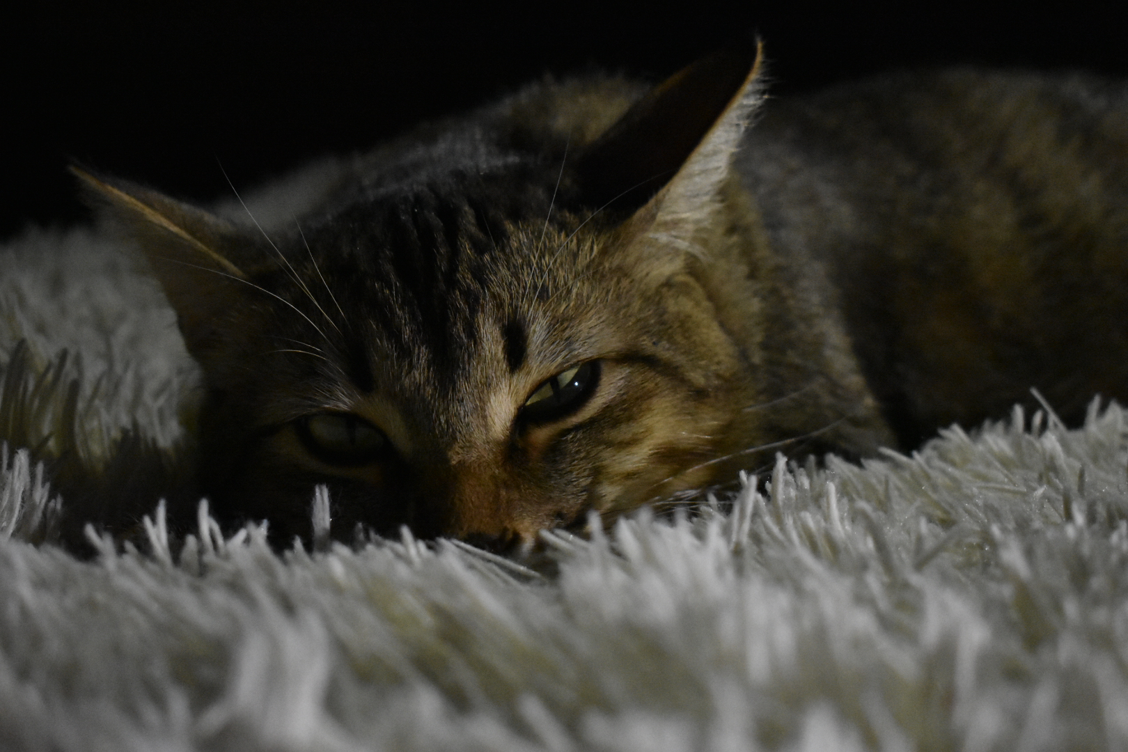 Неплохой снимок! Интересно подошли к проблеме освещение. создав неплохой источник света с боковым освещением. Фонарико неплохо осветил вашего любимца, создал неплохо блик на глазах, но при этом тени получились достаточно контрастными. Хорошо сфокусировались в темноте - снимок резкий, хорошая детализация.