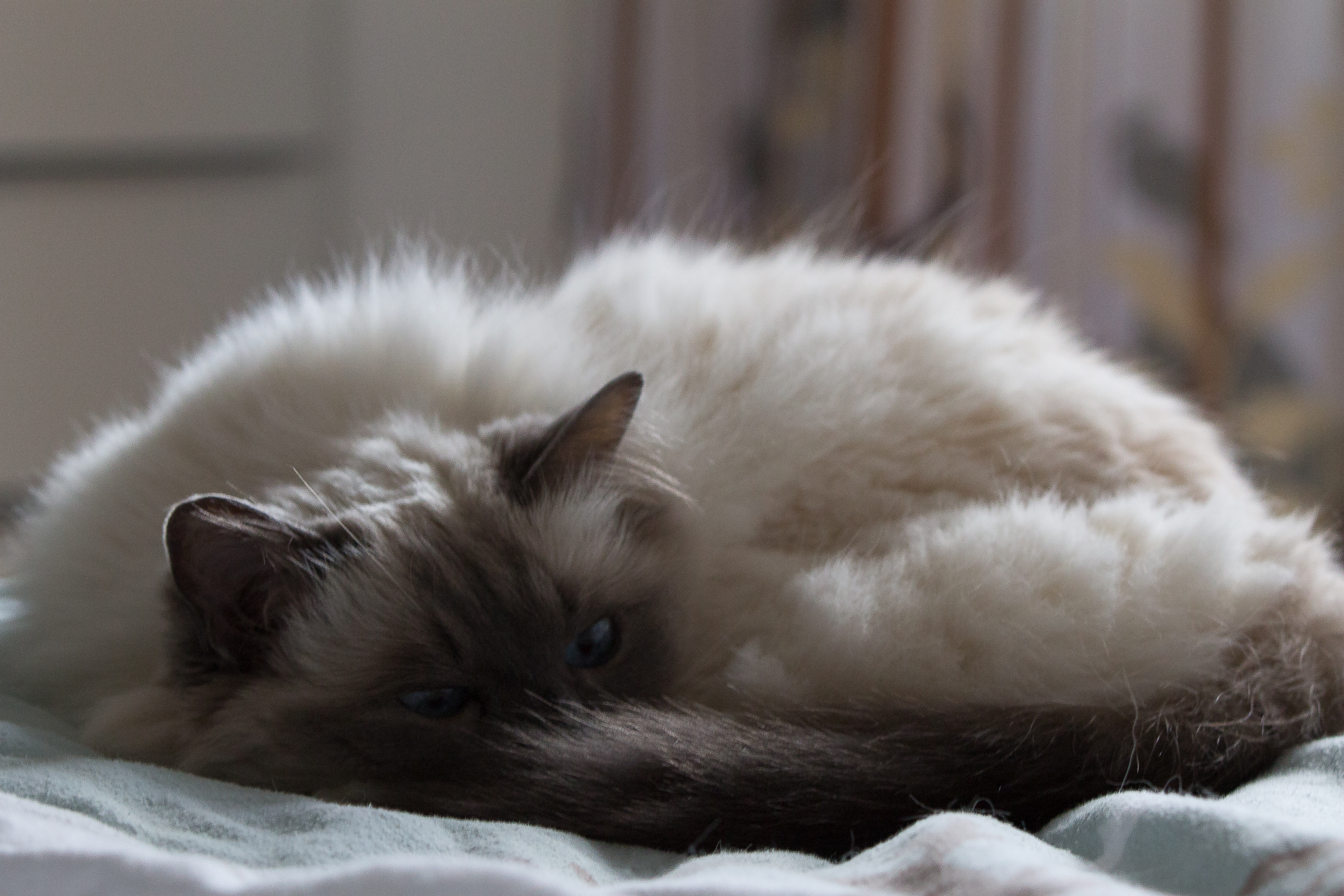 Классный портрет спящего кота, очень тёплая и уютная атмосфера