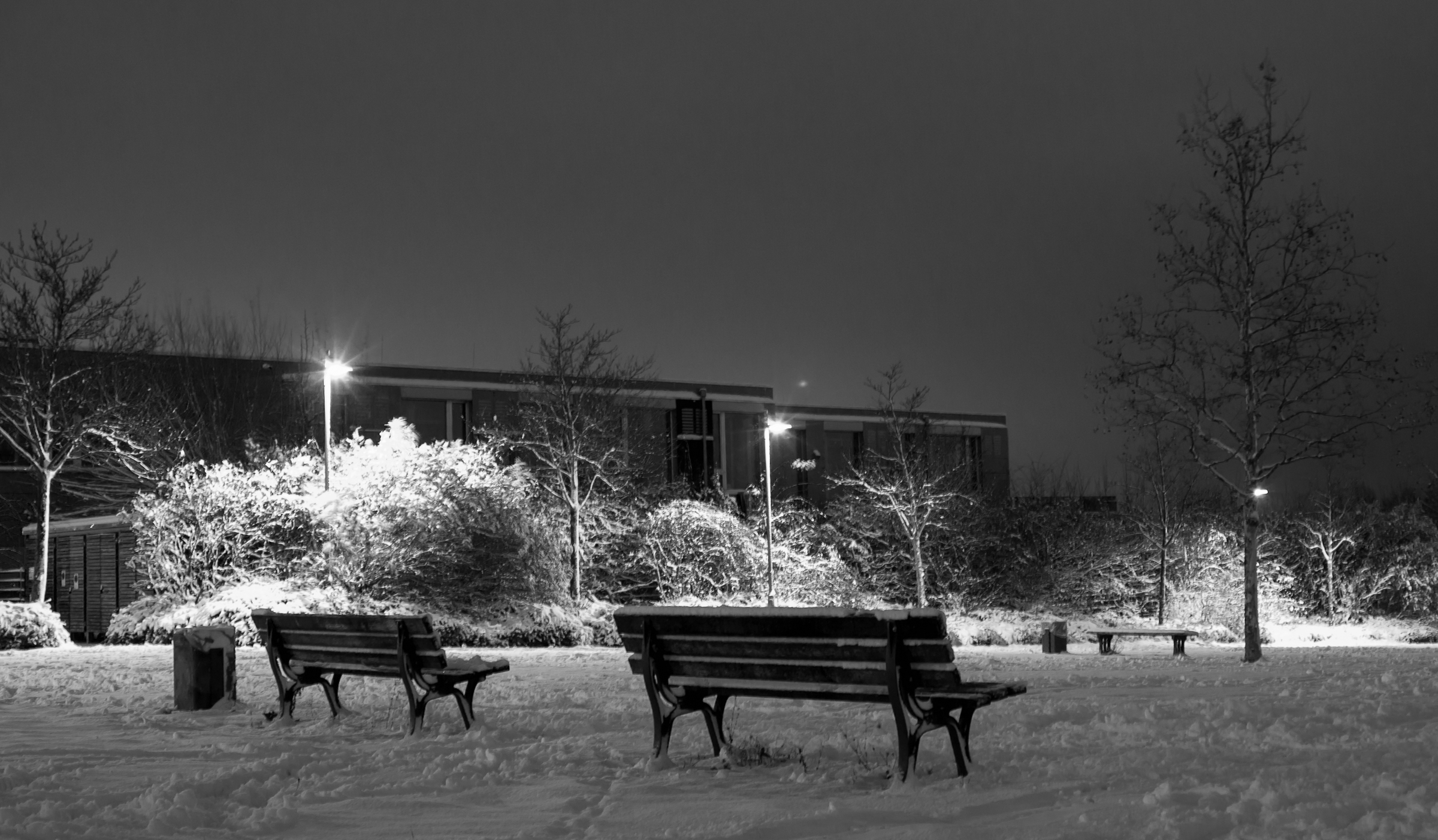 Добрый день. Тут я постаралась сделать черно-белую фотографию, подчеркнув контраст снега и всего остального. Поработала с шумами, сделала кадрирование, скорректировала пересвеченные участки. Не совсем попала в правило третей..