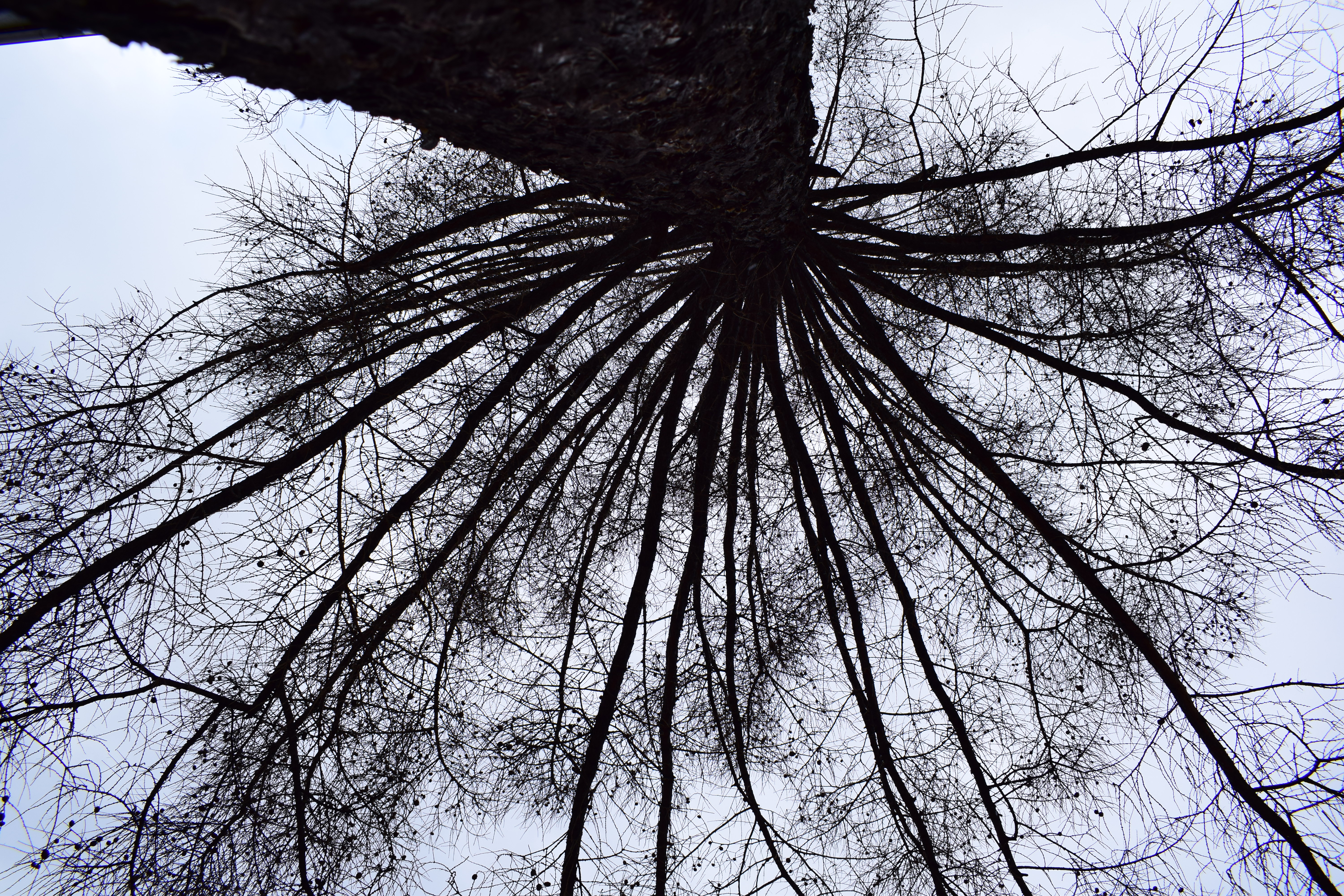 Хороший кадр! Выбрали весьма необычный ракурс с низкой точки на ствол дерева, почти вертикально вверх. За счет этого получился абстрактный снимок, ветви задают движение от центра ствола, а мелкие ветки создают интересный узор. Хорошая резкость и детализация у снимка, параметры подобраны корректно.