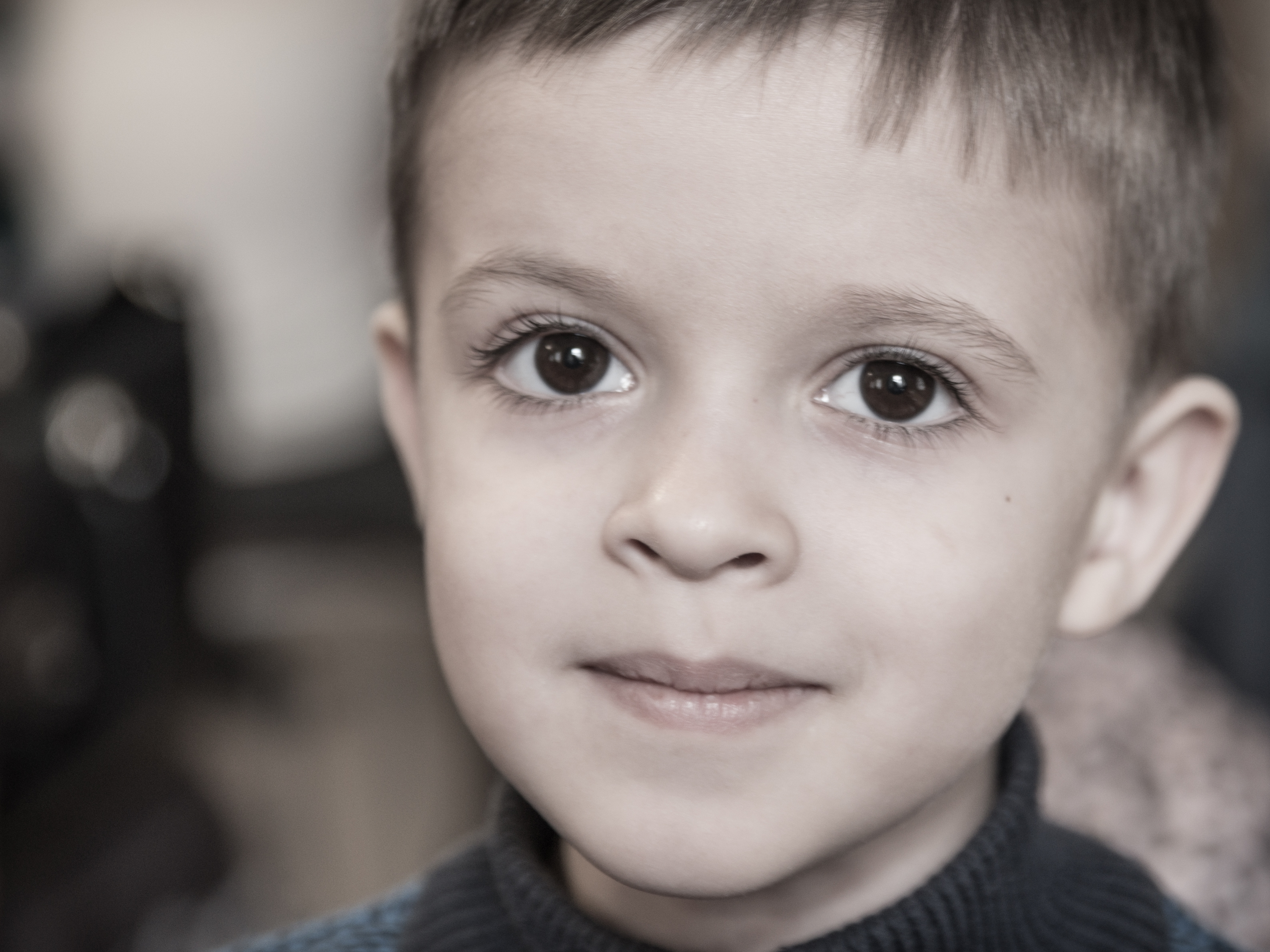 Освещение выбрано удачно, свет рассеянный ровный, портрет получился в светлых тонах, легкими тенями прорисован образ мальчика.