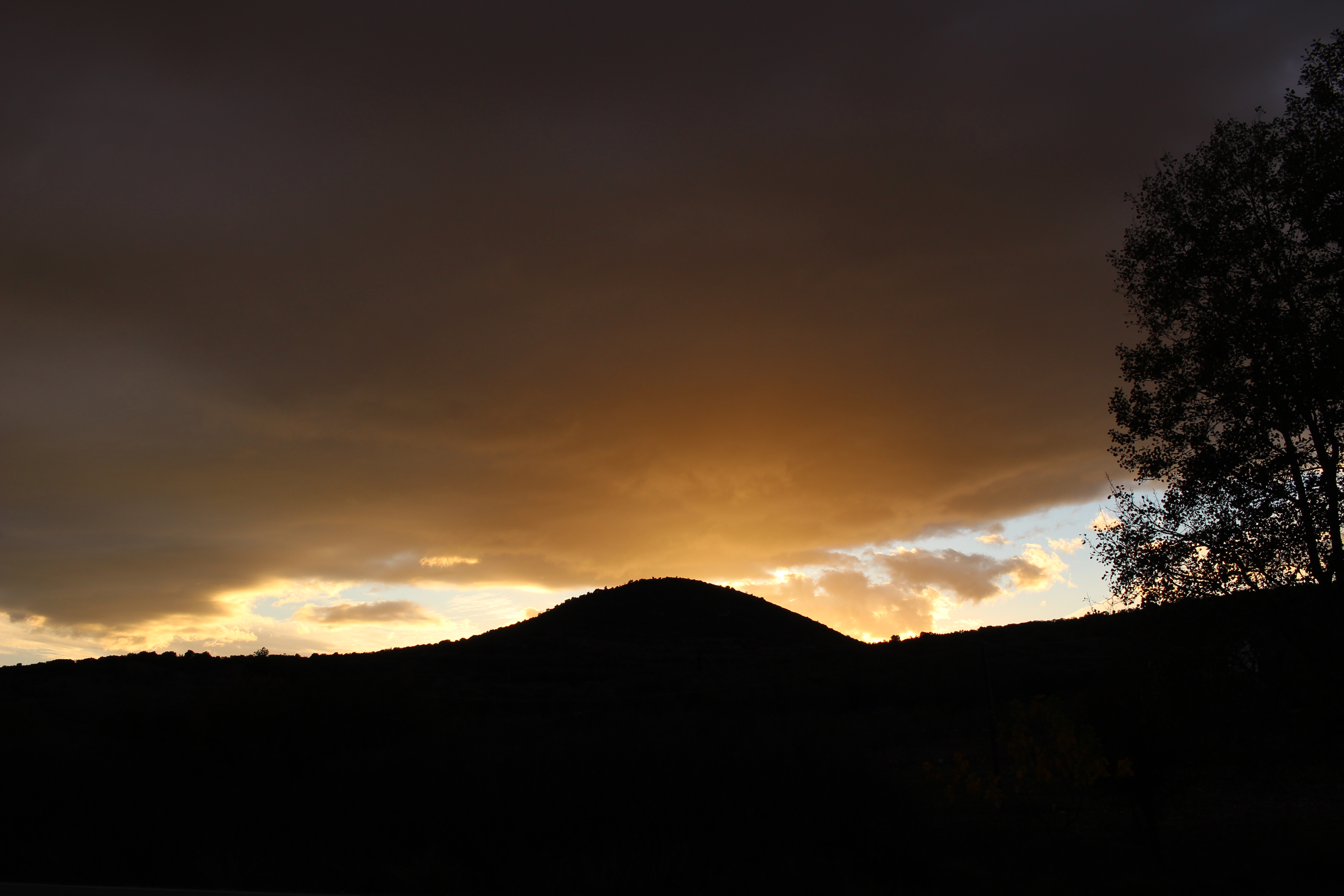 Καλησπέρα, Εδώ είναι ένα ηλιοβασίλεμα, με τον ήλιο να έχει μόλις κρυφτεί και το φως να φαίνεται στα σύννεφα. ISO 100, f.8.0 για οξύτητα, και 1/160 που κάνουν πιο σκοτεινή τη φωτογραφία αλλά πιο έντονο το χρυσό φως στον ορίζοντα.