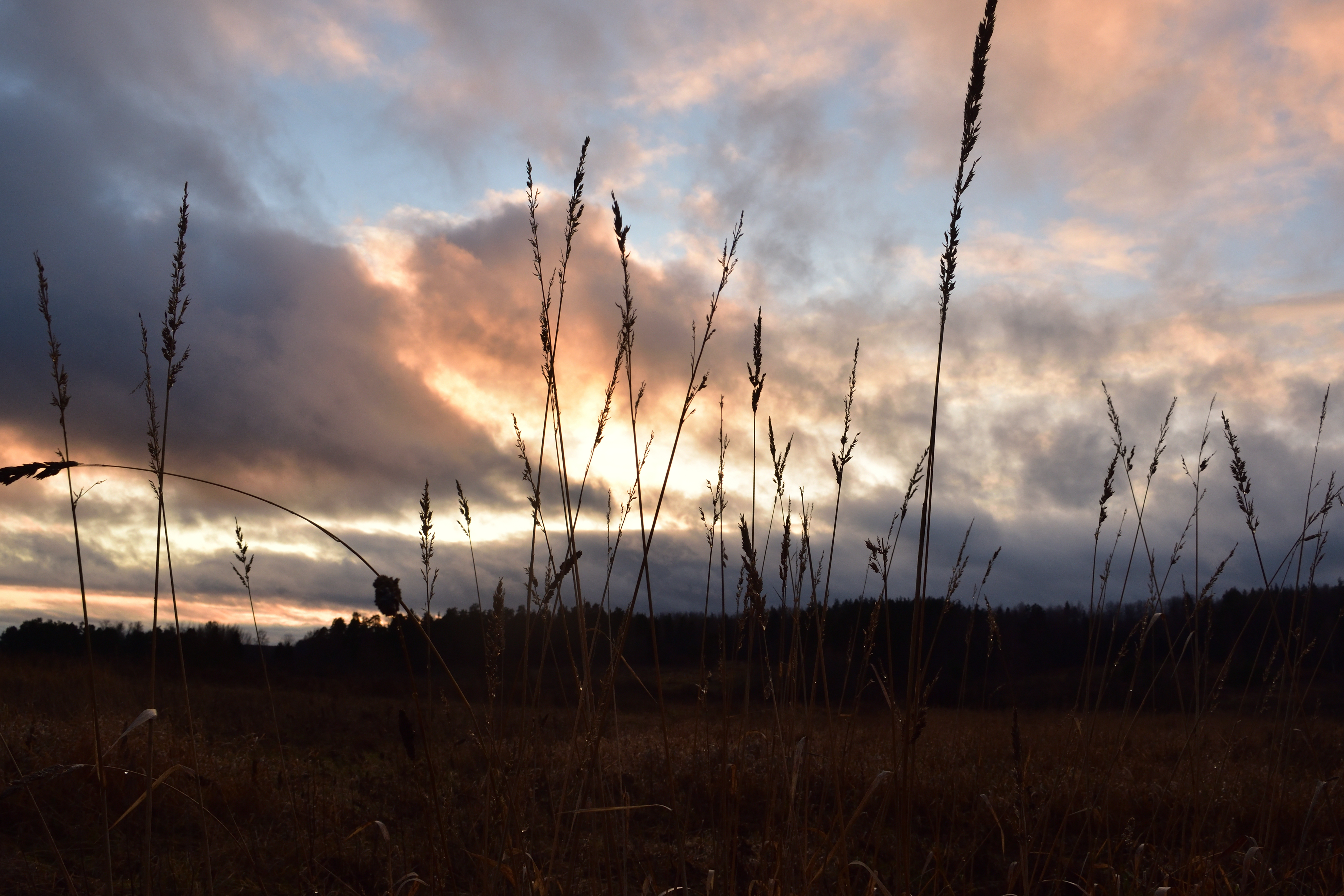 Неплохой снимок! Показали красивый закат и силуэты травы на его фоне. Кадр получился достаточно резким. При обработке убрали сильный наклон линии горизонта. который был у оригинала. При этом немного вытянули тени, и детали в них стали лучше читаться.