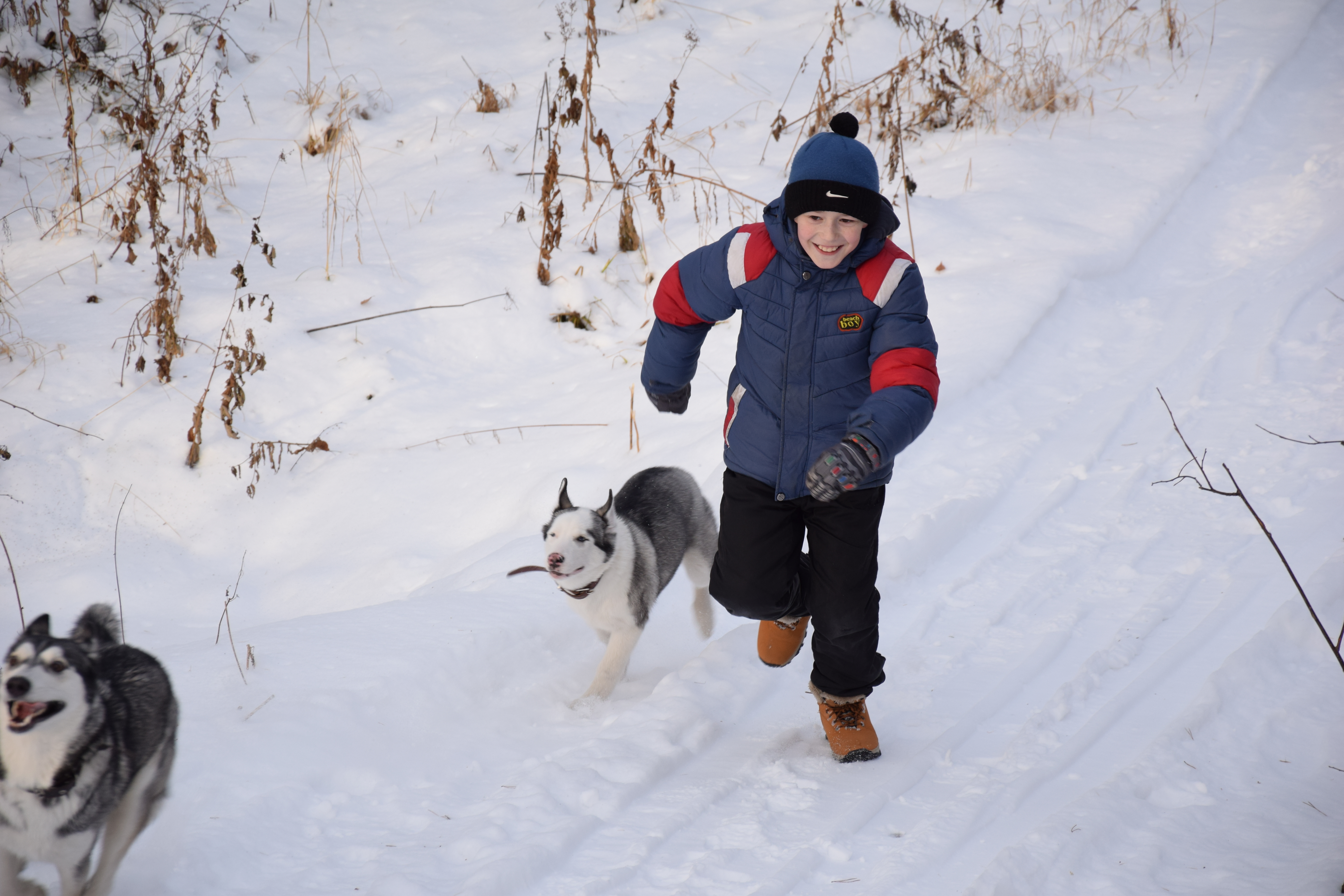 Хороший снимок! Отличной поймали момент с динамикой - ребенок и собаки достаточно быстро бегут на камеру. При этом ребенок резкий, камера точно сфокусировалась на нем. Выдержка достаточно короткая, чтобы заморозить движение, хотя некоторые детали оказались смазаны.