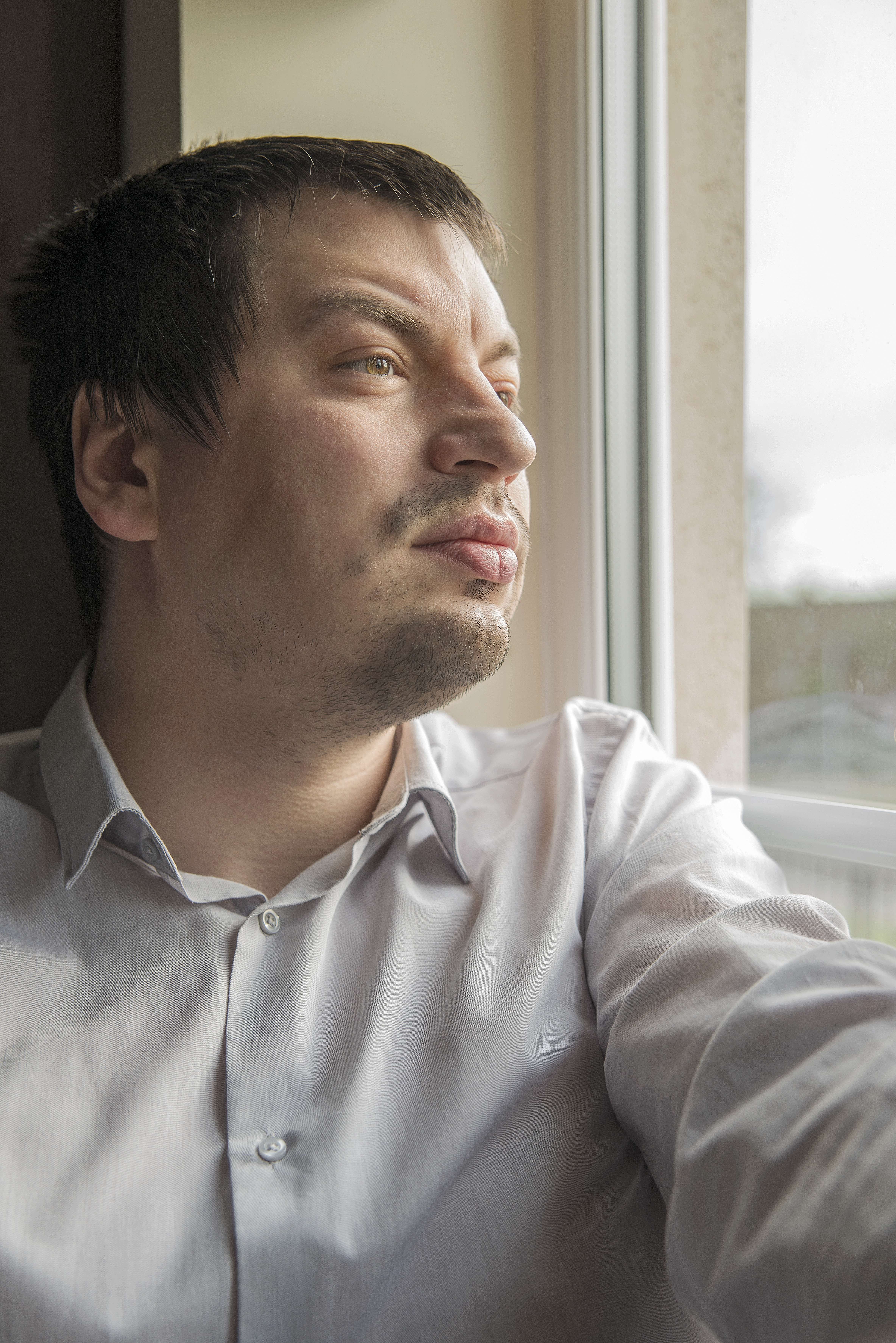 Были уменьшены тени, отретушированы недостатки кожи, убран красный оттенок цвета кожи, увеличена резкость, с помощью затемнителя выделены брови и щетина