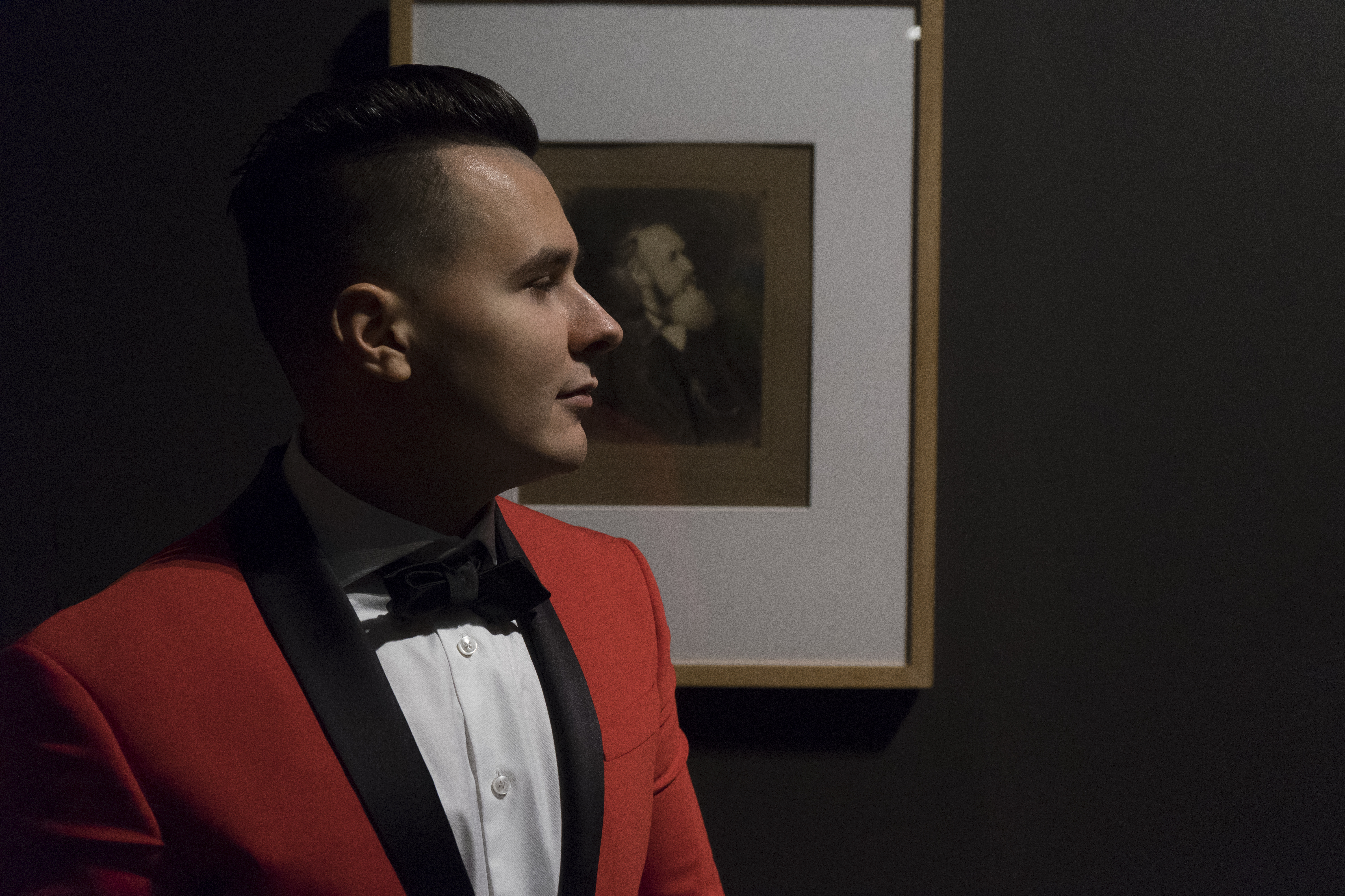 интересная задумка- профиль на портрете и профиль модели, оба в костюмах, только модель без бороды)) кадрирование правильное, корректно выбрано автоматикой фокусное расстояние и выдержка