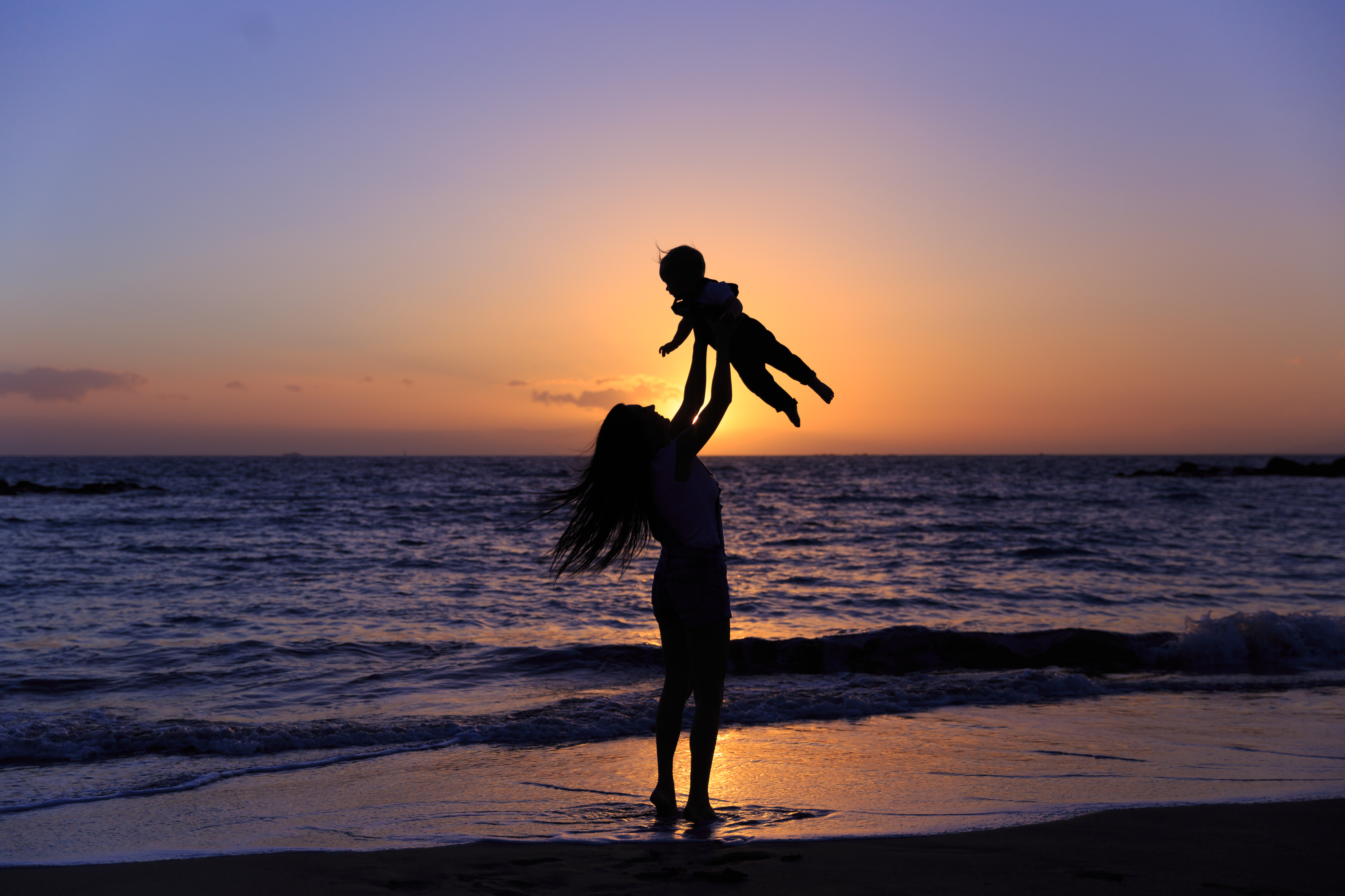 В данном снимке баланс темного и светлого, баланс малыша в руках мамы, баланс моря и неба...