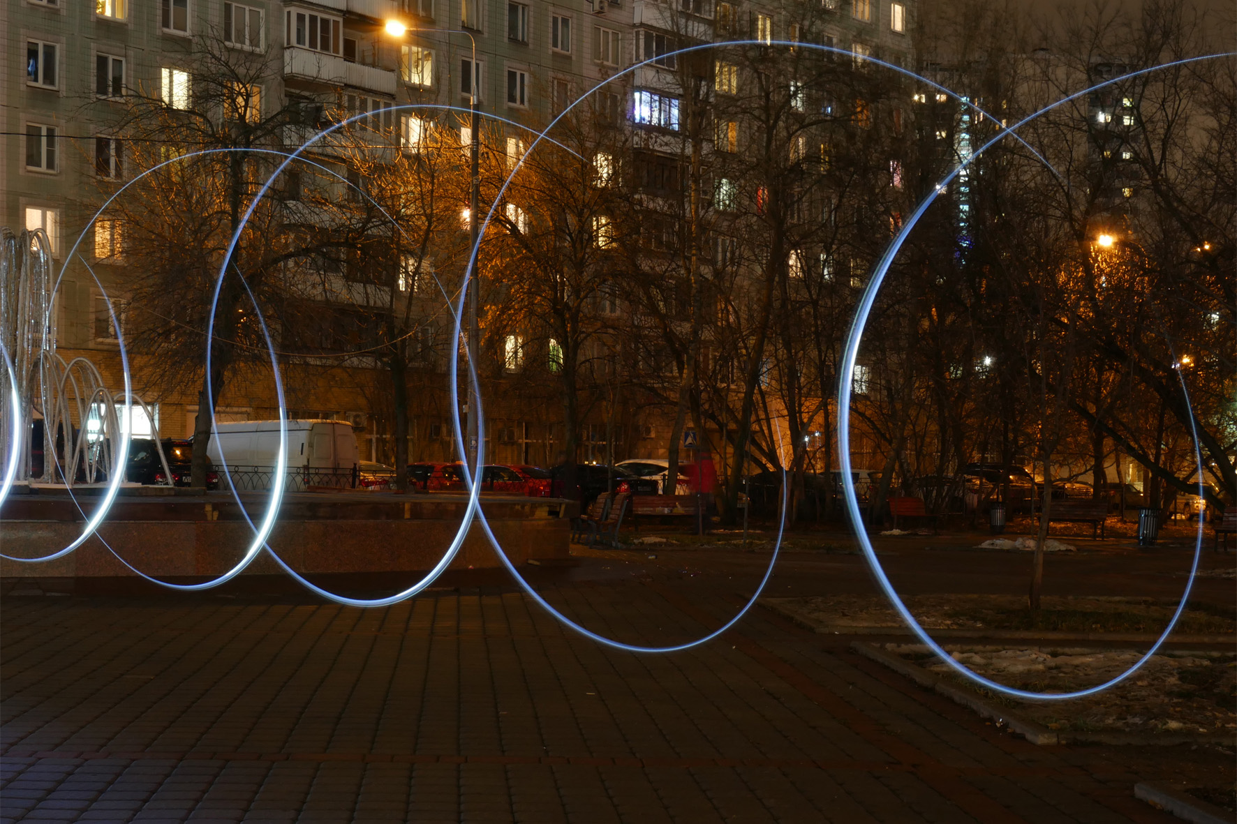 Дифрагму пришлось прикрыть, чтоб световой след был в фокусе, и при 15 секундной выдержке (время на рисование) пришлось отпустить ISO.