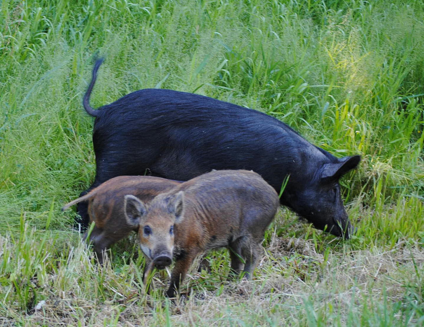 Неплохой кадр! Сделали снимок семейства кабанов. Неплохо поймали момент с животными в кадре, удачно вписав их по расположению. Хорошо подобран ракурс с не очень высокой точкой съемки. Зелень обеспечила хороший однородный фон.