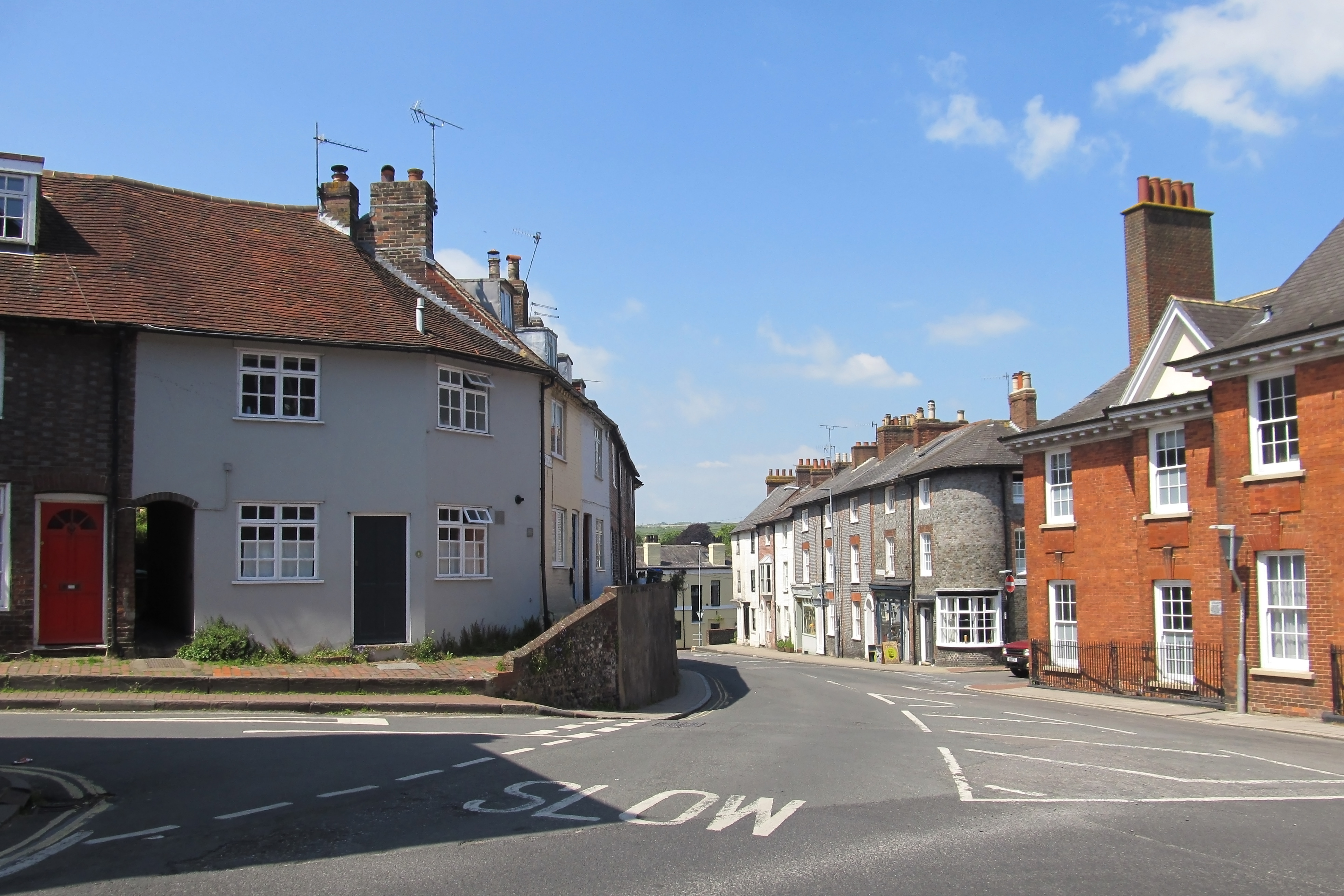 Неплохой кадр! Сделали фотографию красивого городского пейзажа с уличным перекрестком на переднем плане. Дома и их архитектурные элементы задают на снимке ритм, подчеркивая перспективное сокращение. Линии тротуаров и дорожной разметки также подчеркивают перспективу на снимке.