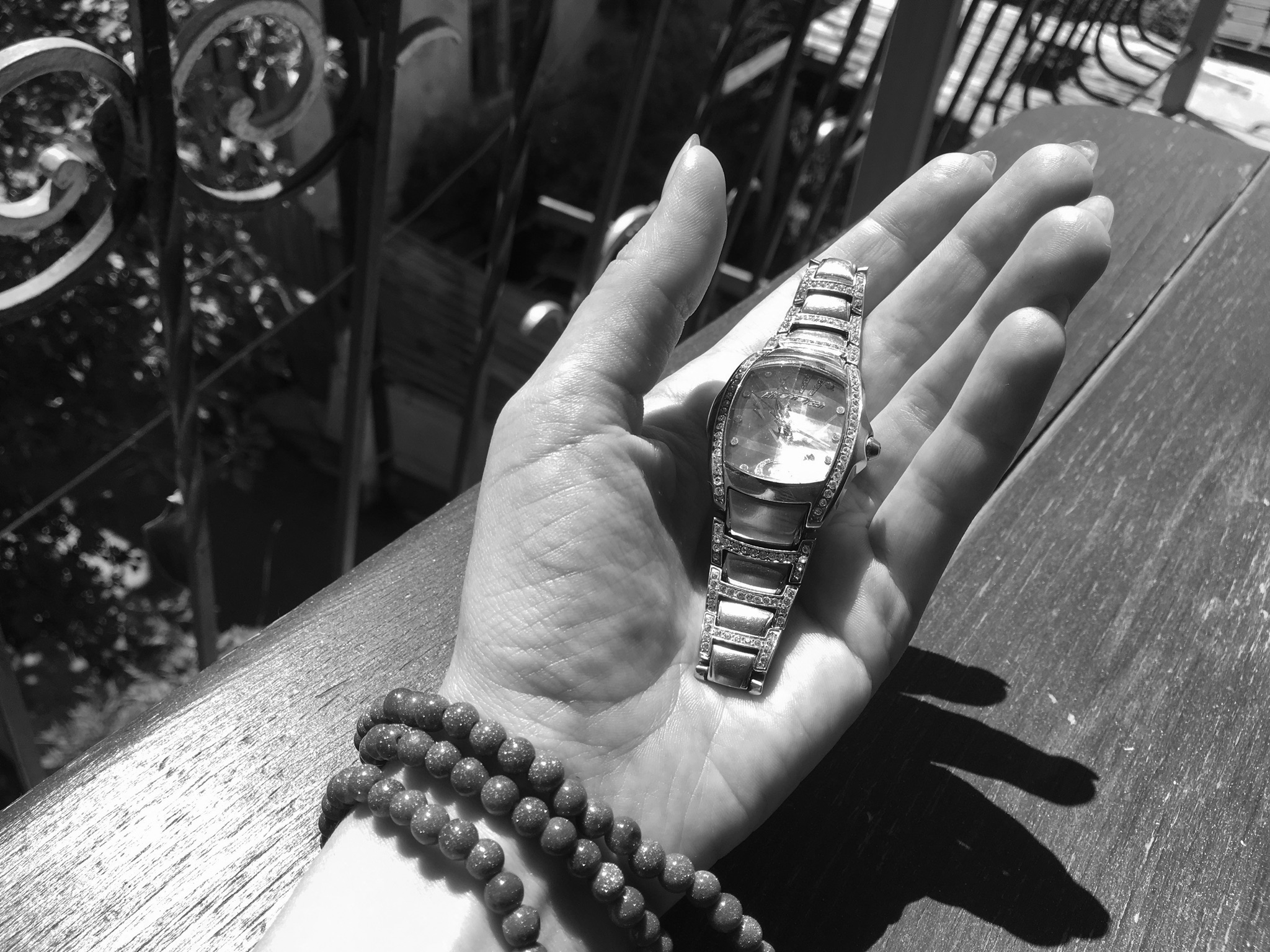 Хорошая работа в целом, весьма удачный кадр для перевода в чб. Однако при таком плане, часы смотрятся не очень заметно. Стоило взять план крупнее поднеся телефон ближе