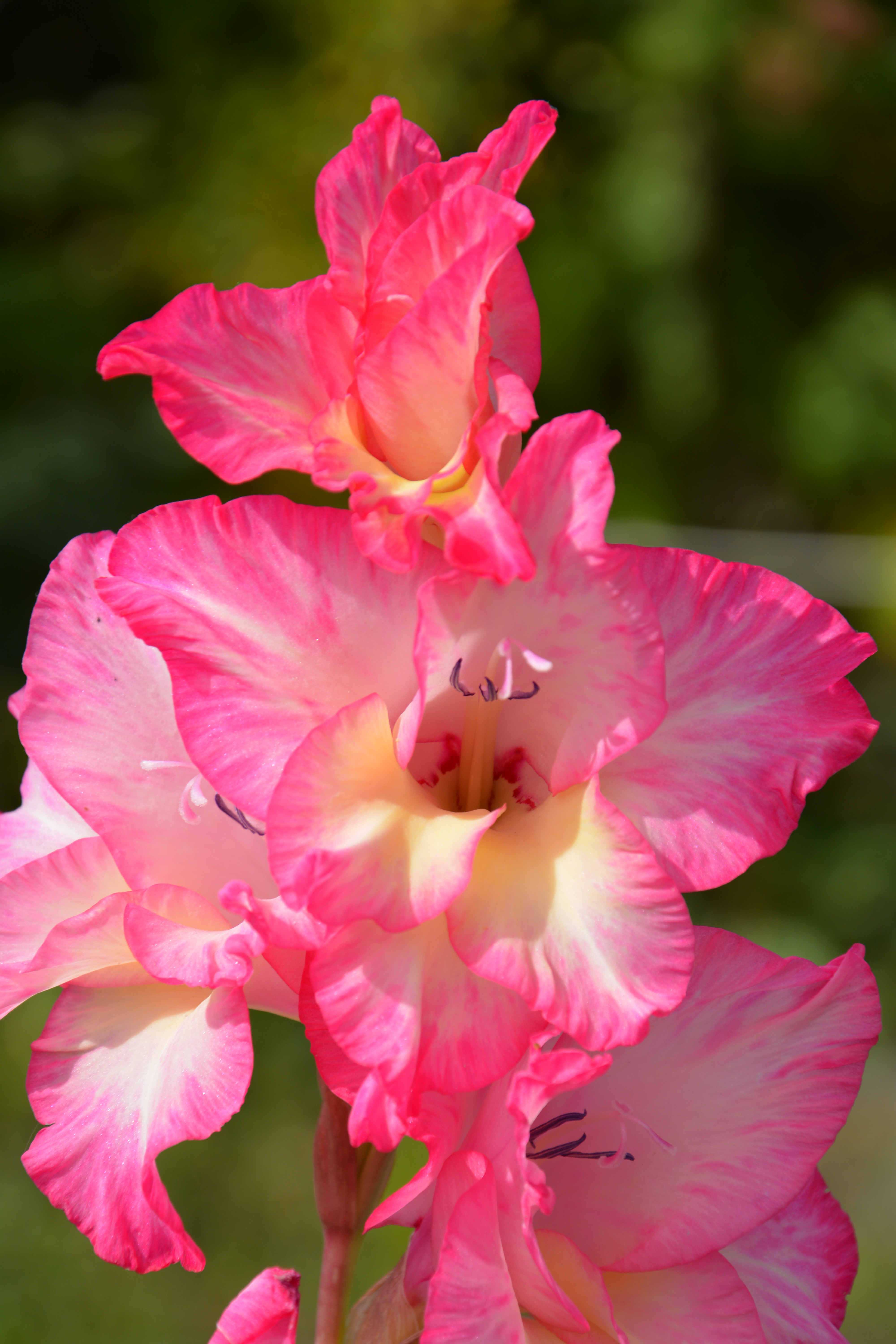Неплохой кадр! Сделали снимок красивого и яркого цветка гладиолуса, показав его крупным планом в кадре. а счет большого фокусного расстояния и небольшой дистанции съемки удалось показать размытый задний план на снимке. добавив ему объем за счет этого. Диафрагму при этом можно было открыть сильнее, чтобы размытие было более мягким.