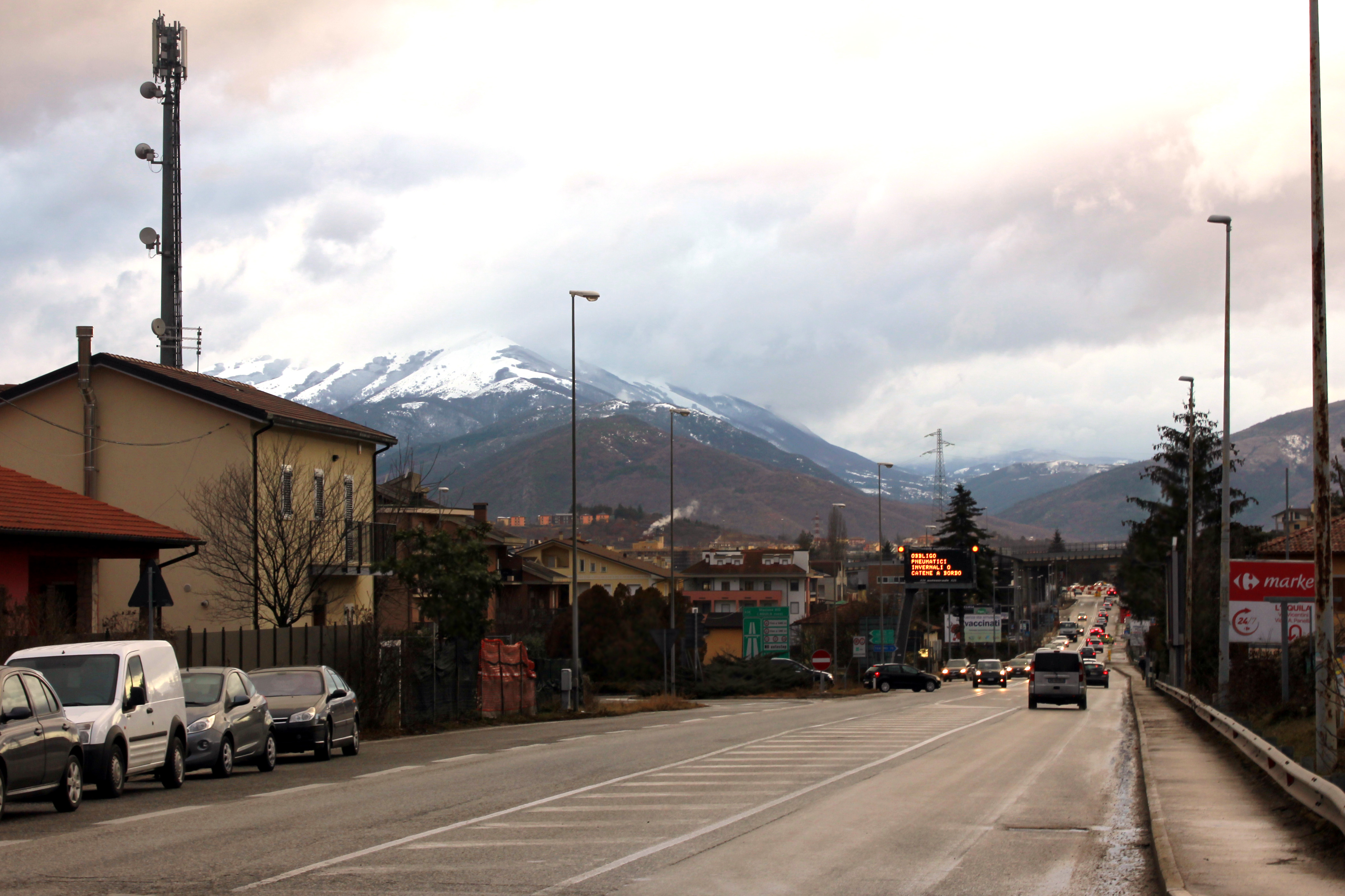 Италия город Л'Акуила. Кадр сделан перед закатом. Вопрос: не слишком ли кадр темный? Например, кусты в центре кадра практически превратились в черное пятно. Или лишние элементы "распыляли" бы внимание?
