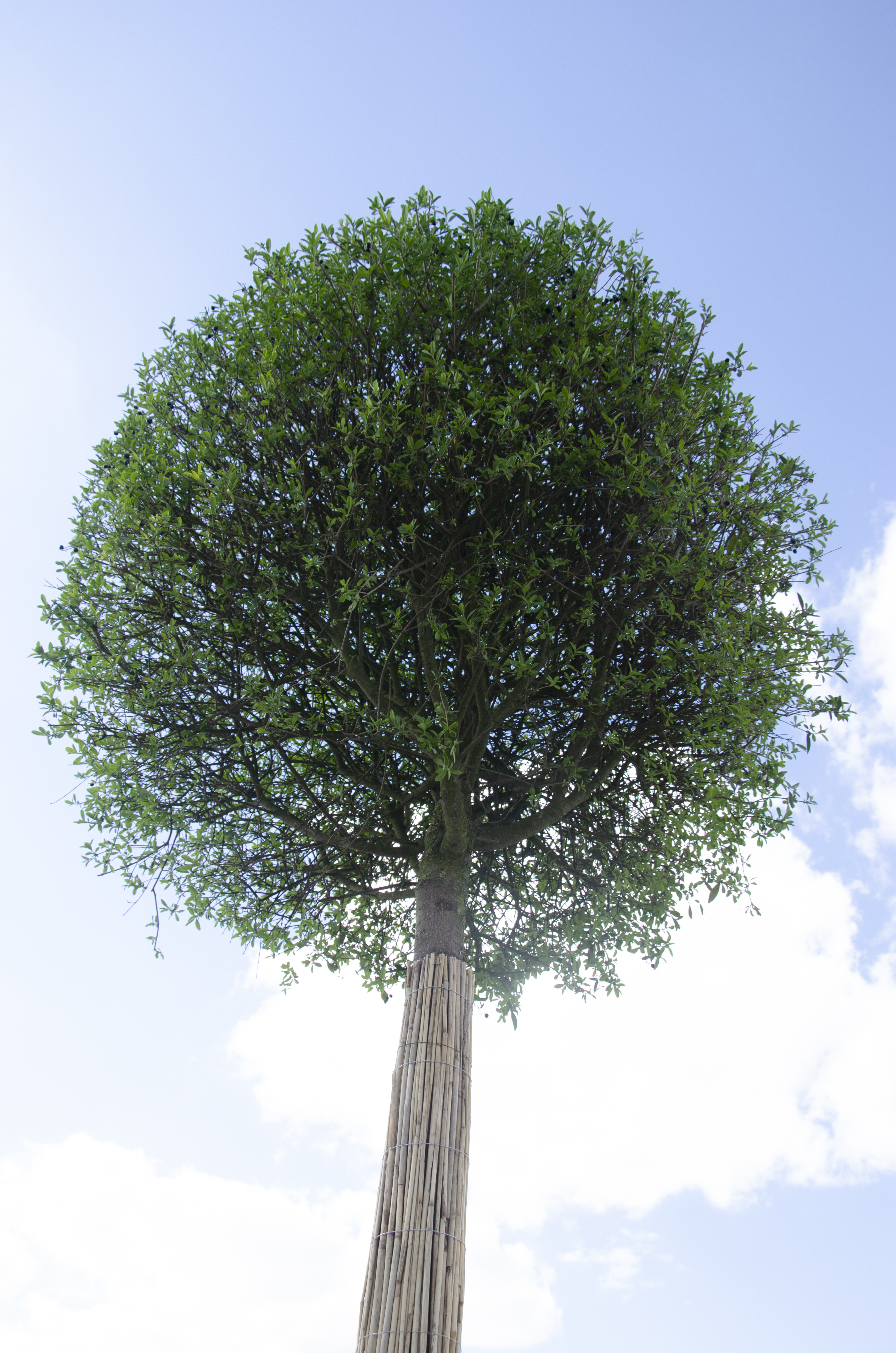 Дерево расположено в центре кадра, что помогает выделить его симметричную форму.