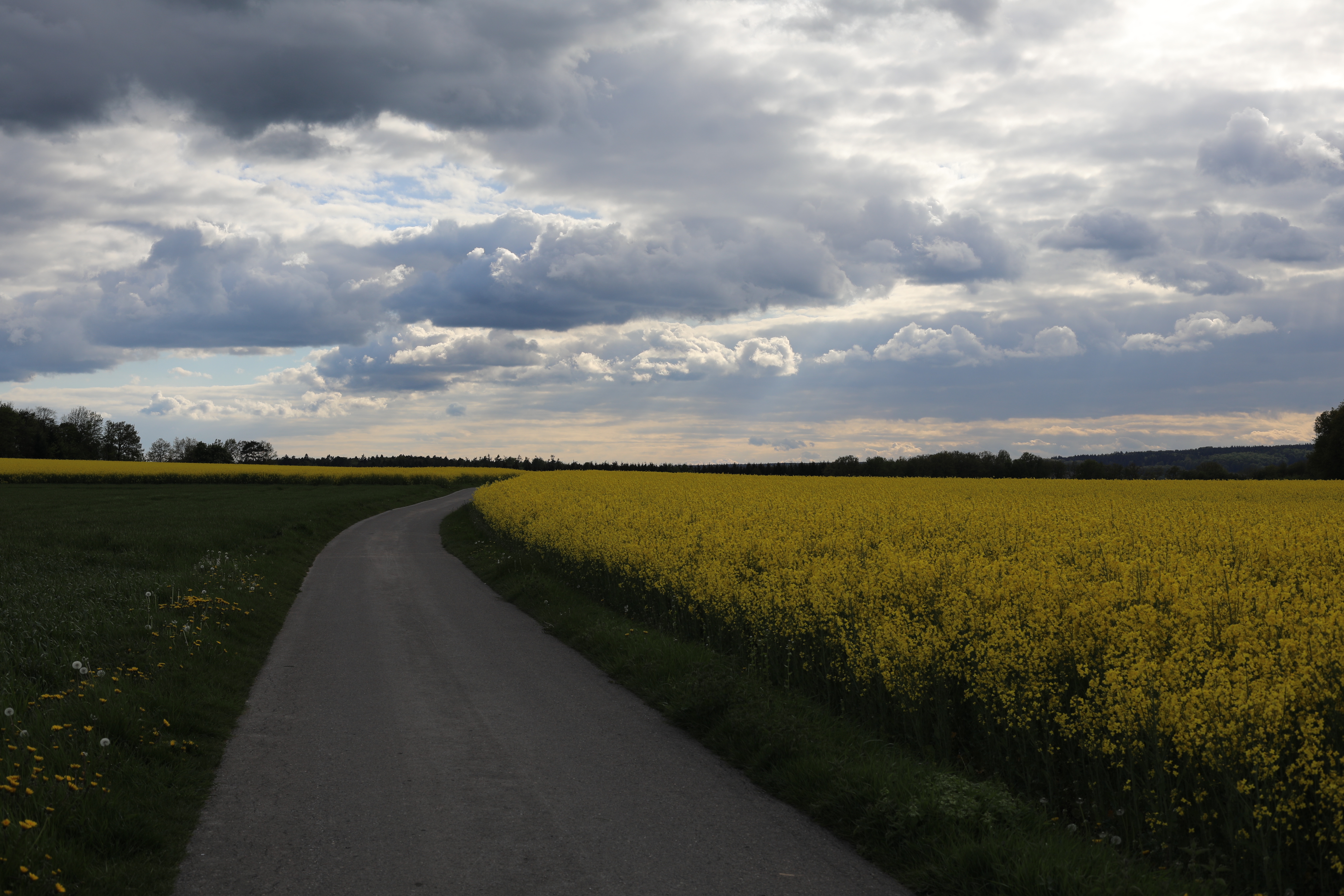 В Германии все поля - это сплошная геометрия линий. Здесь мне понравилось сочетание линий из дороги и цветов поля.
