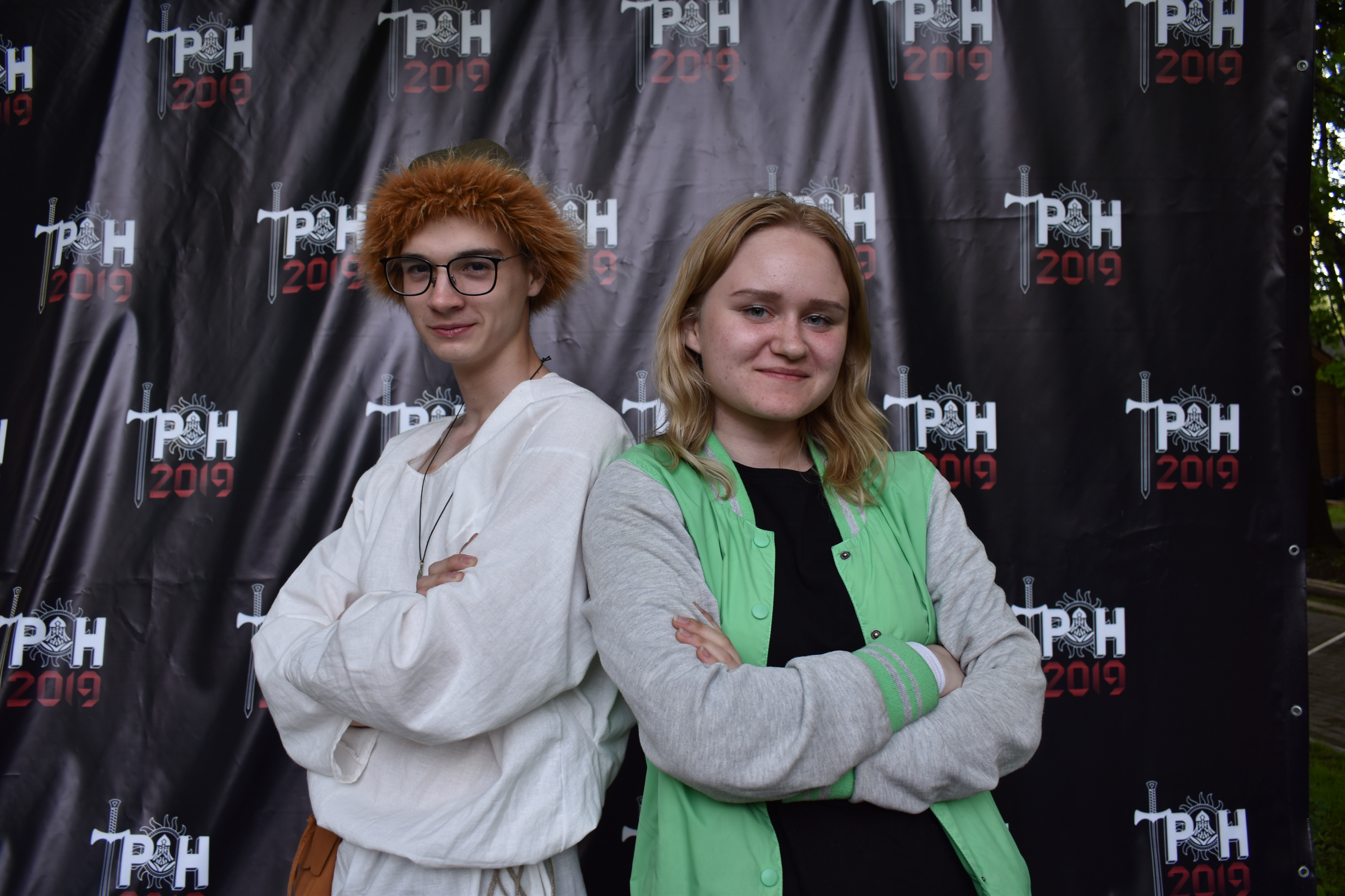 Неплохой кадр! Сделали снимок парного портрета во время мероприятия. Удалось показать неплохо фигуры героев с поясным вариантом кадрирования. Темный пресс-вол неплохо подчеркивает силуэты светлых фигур в кадре. Несмотря на сложные условия освещения в помещении, удалось подобрать верные параметры камеры и получить хороший результат и качество снимка. Неплохо поймали момент и внимание моделей в кадре.