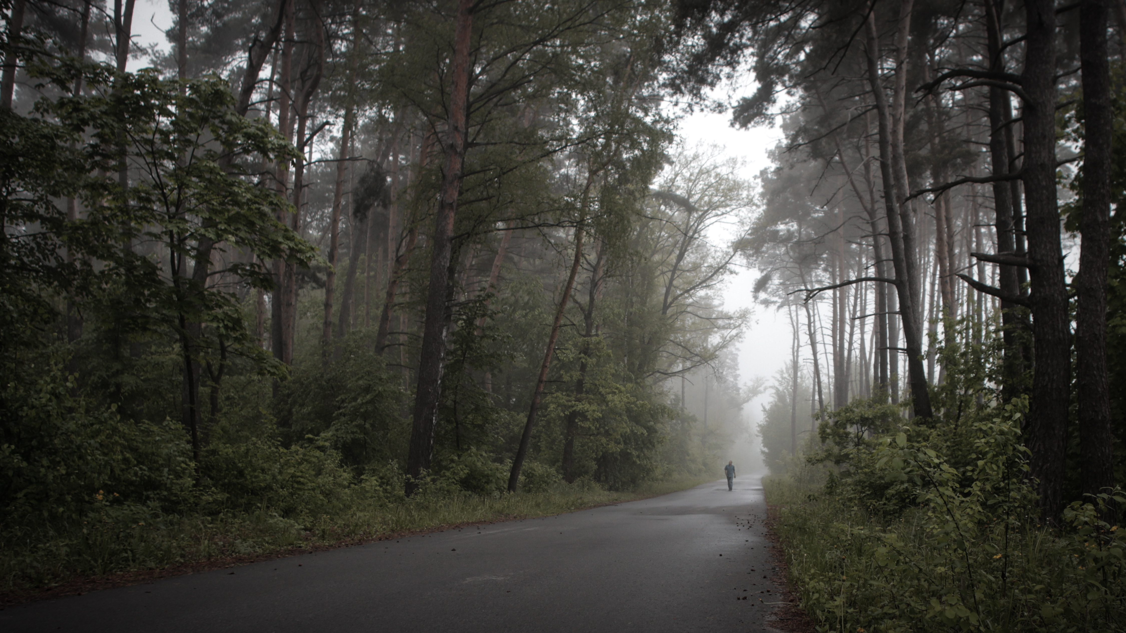Вы отлично поработали! Получили выразительный, атмосферный снимок. Отлично показан туман. А как здорово вписался человек! Он оживил сюжет, добавил ему смысловой нагрузки. Человек словно увлекает нас за собой, а дорога как раз подталкивает наш взгляд к нему.