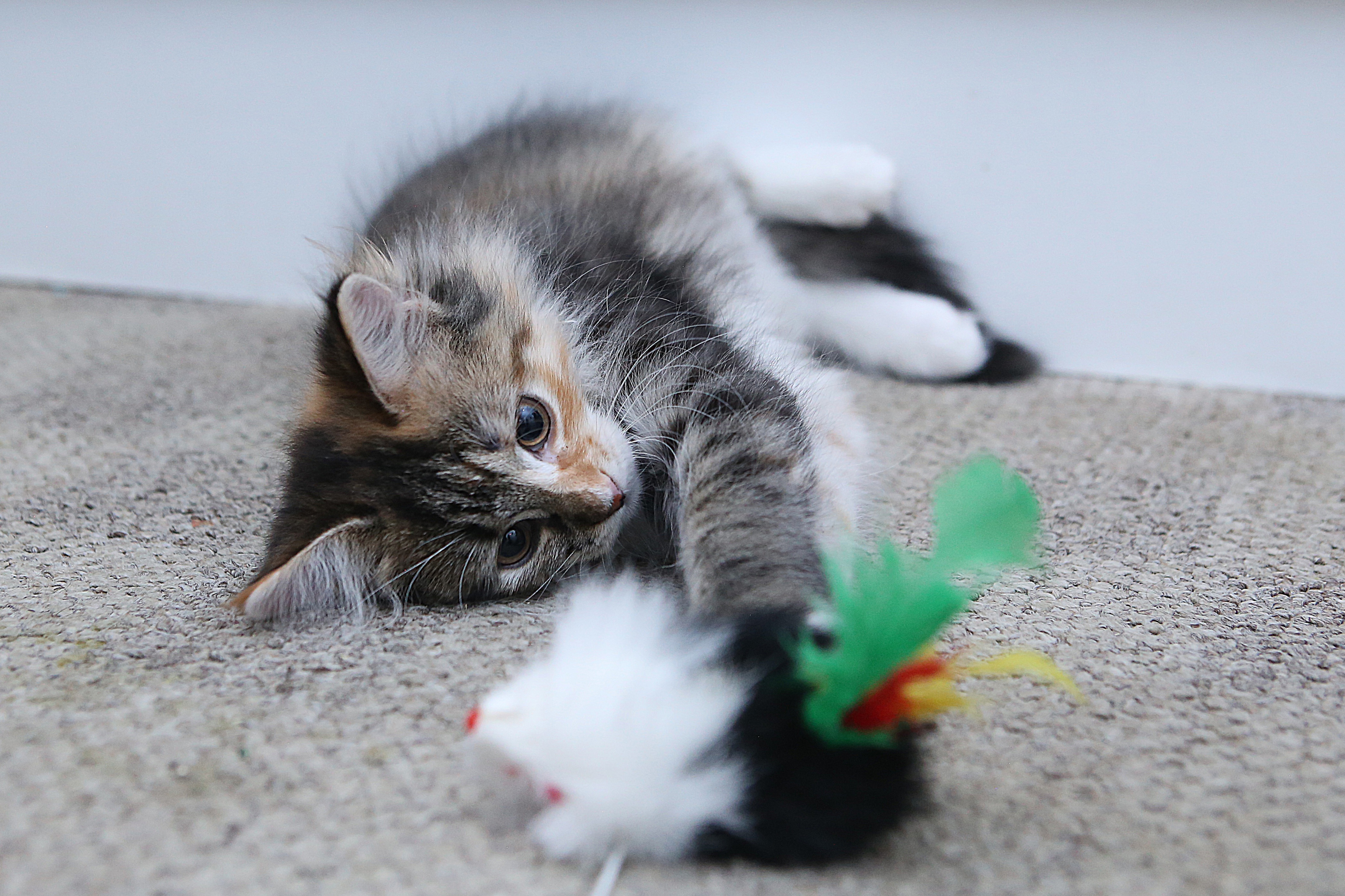 Игрушку желательно расположить дальше или приподнять камеру, чтобы отделить лапки от игрушки. Это добавит позе выразительности, а образу питомца целостности.