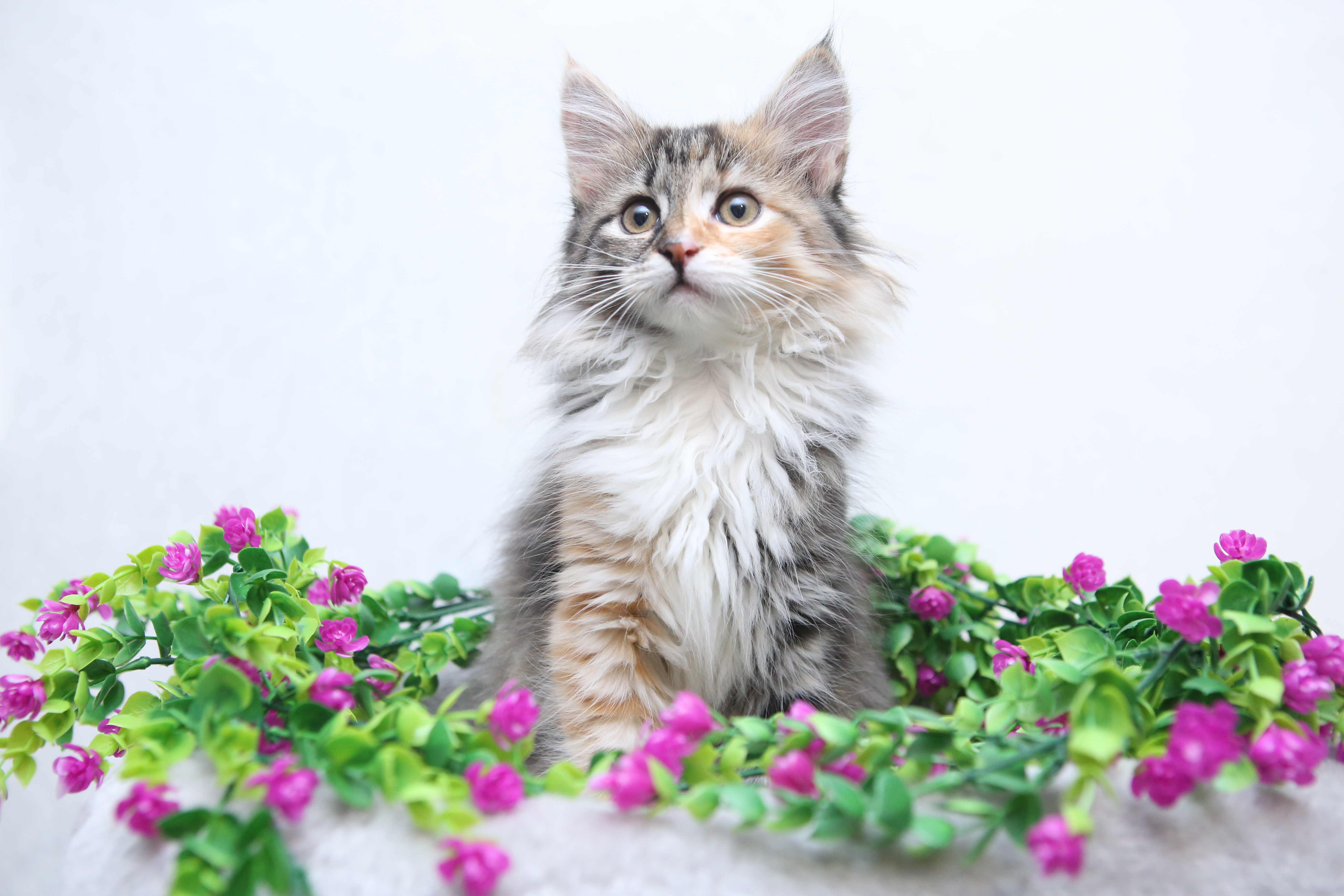 Отлично поймали взгляд кошечки. Точка съемки немного занижена, это делает пушистую модель в кадре выше и значительнее.