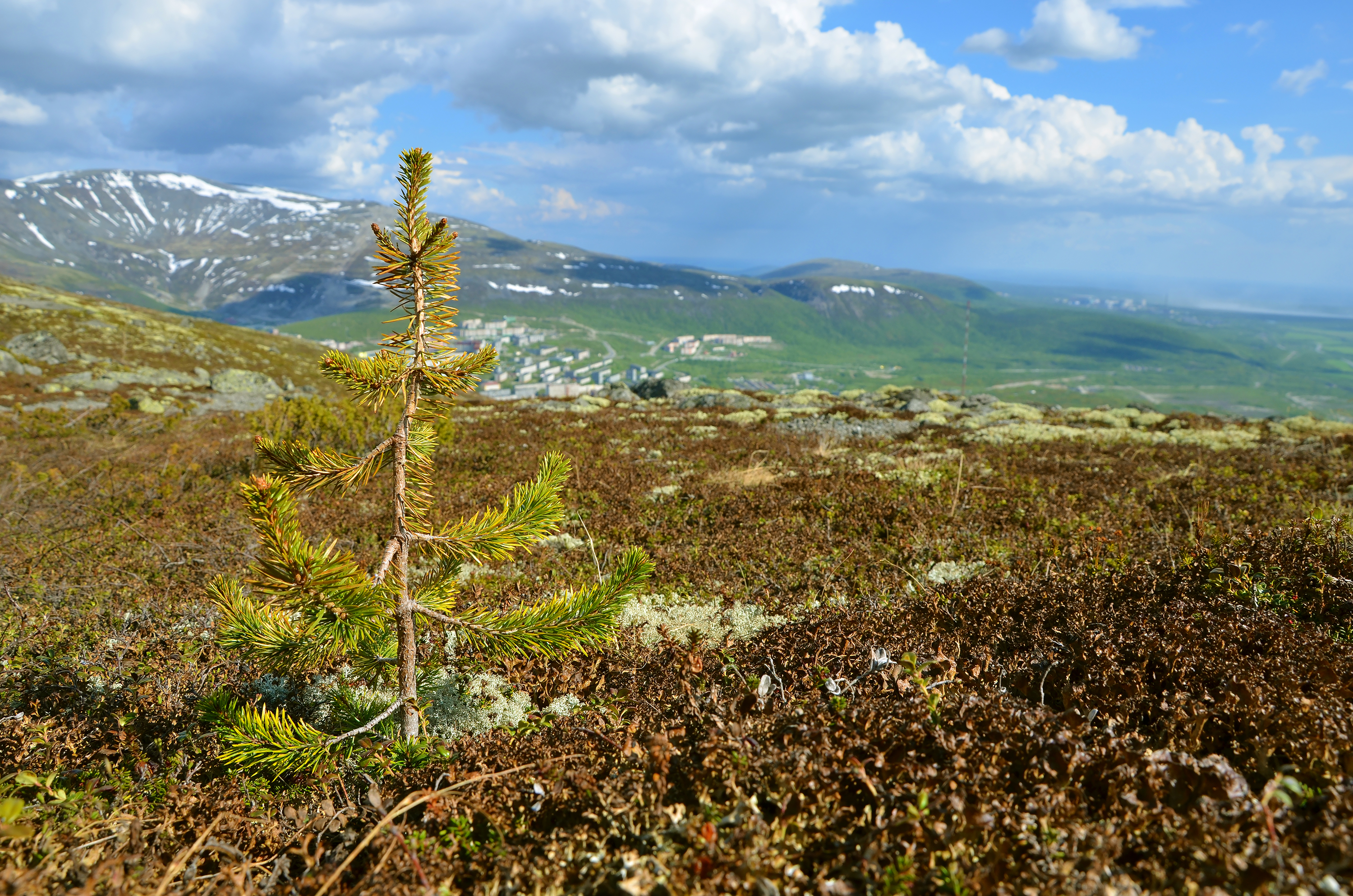 Снимок сделан в горах Хибины (Мурманская область). Просто маленькое дерево на фоне гор.